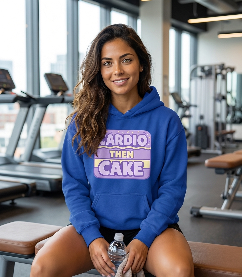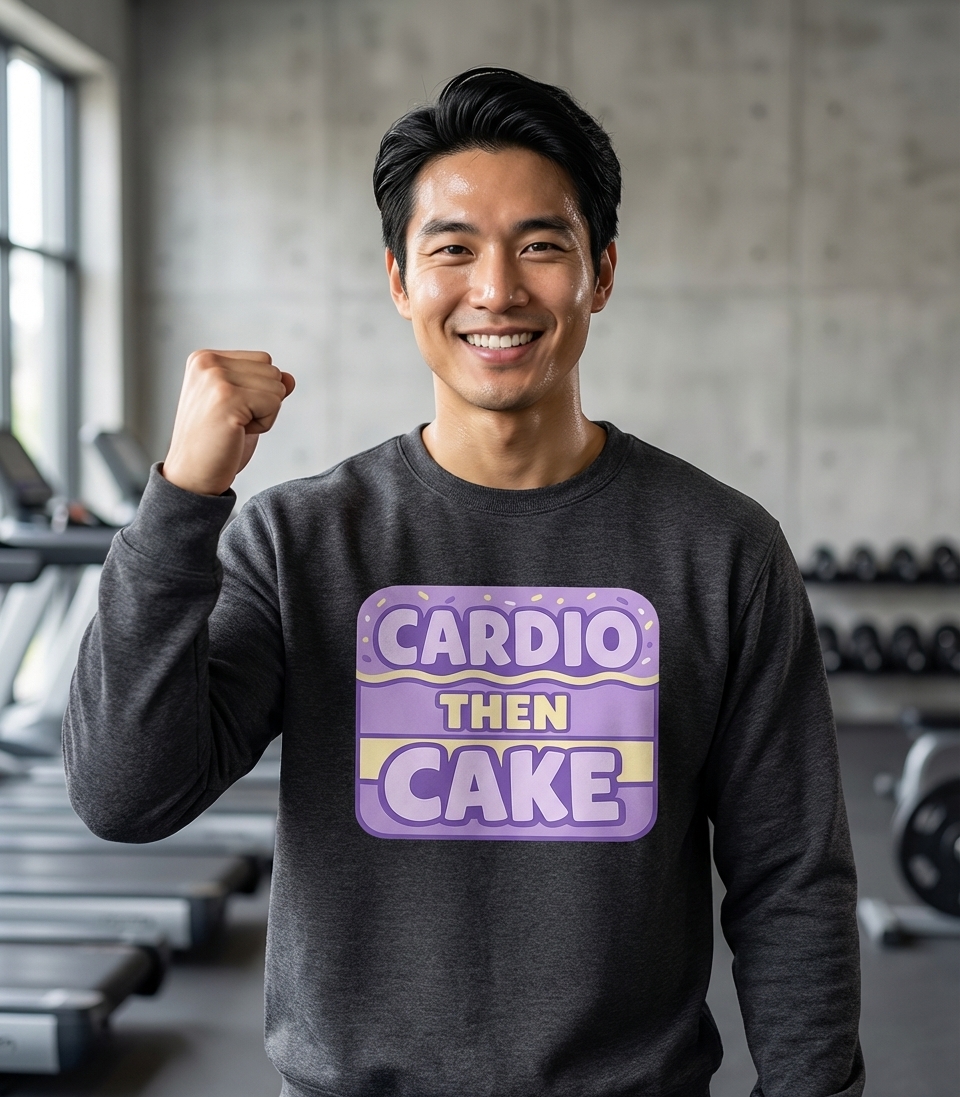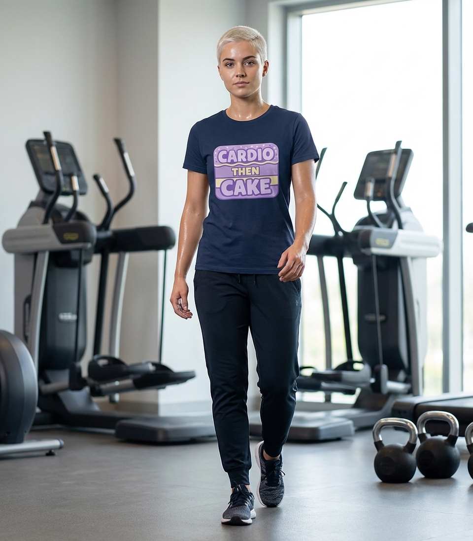 The "Cardio Then Cake" phrase captures the lifestyle of passionate fitness enthusiasts who push their limits in workouts and savor delicious rewards.
