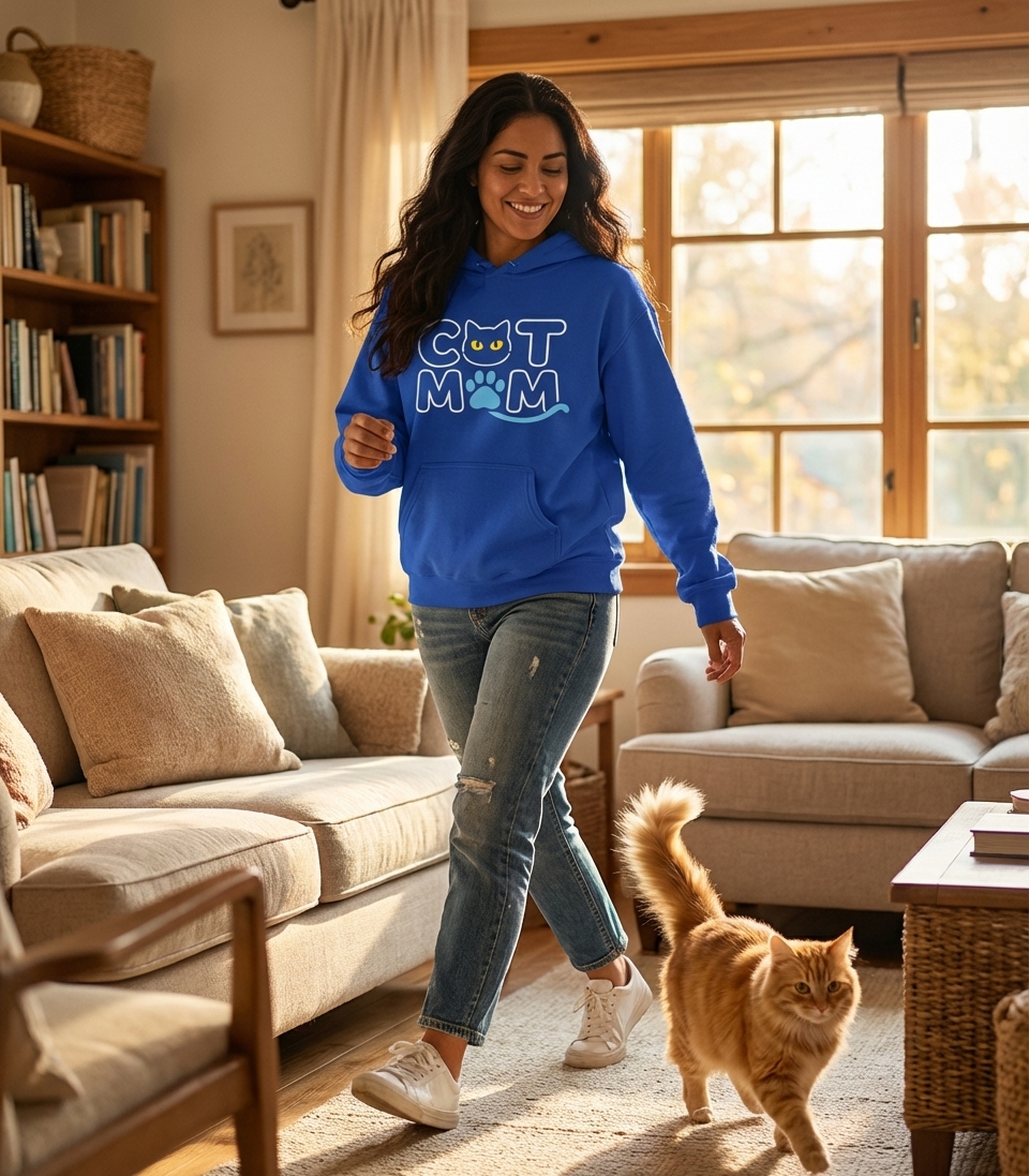 The 'Cat Mom' design celebrates the unique bond of feline lovers who adore their purrfect companions, cherish playful moments, and embrace the joy of pet parenthood.