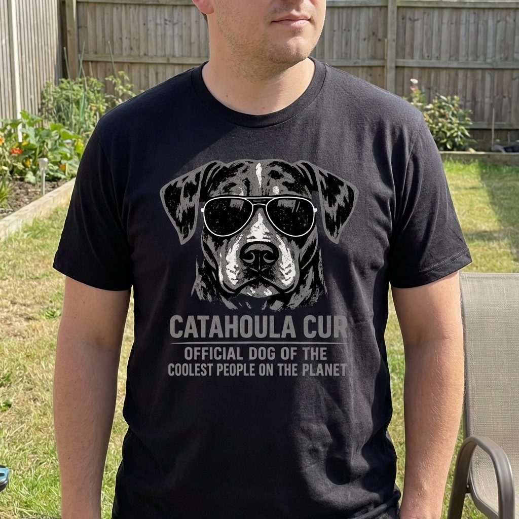 The 'Catahoula Cur: Official Dog of the Coolest People on the Planet' design captures the confident lifestyle of devoted dog owners who appreciate unique breeds, cool aesthetics, and a touch of humor.