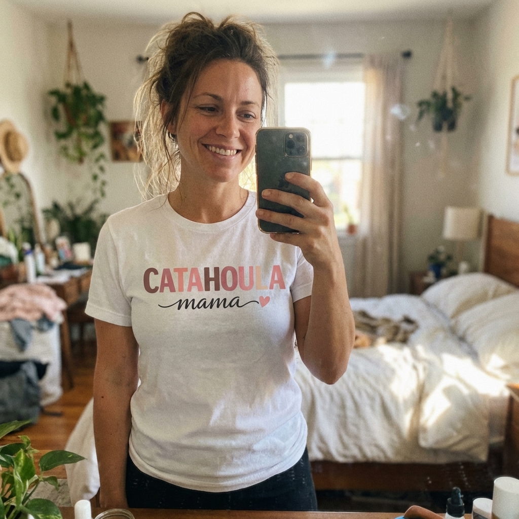 OMG this tee is perfect! The 'Catahoula Mama Love' design is subtle but so cool, and the material feels really nice. I've already gotten compliments, def a win!
