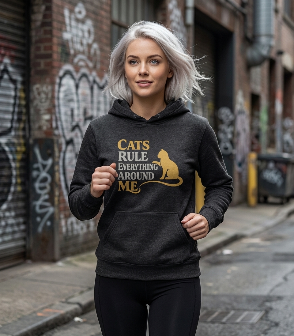 The phrase "Cats Rule Everything Around Me" is a witty adaptation of a well-known cultural reference, reimagined to celebrate the dominant role cats play in our lives. It encapsulates the affectionate bond between humans and their cats, acknowledging that our pets often dictate the rhythm of our homes and hearts.