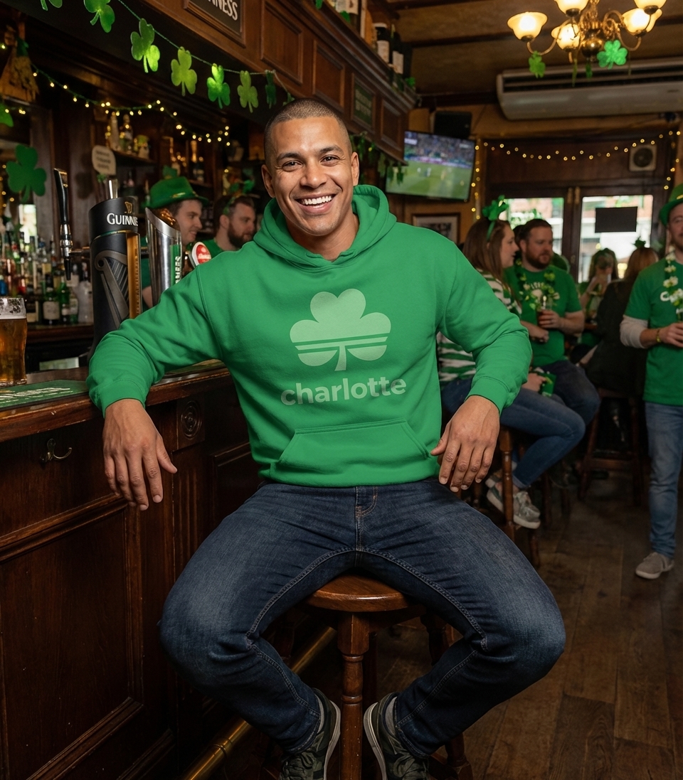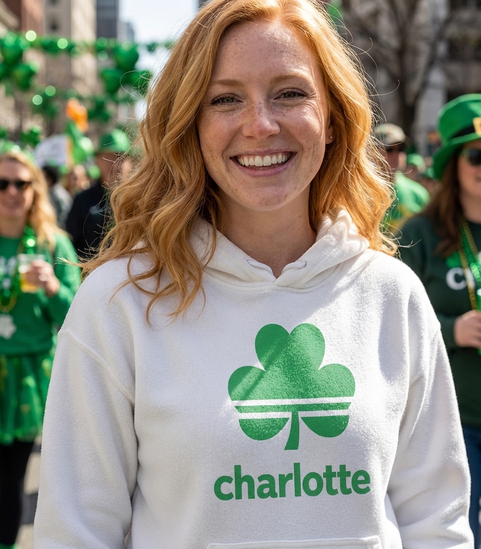 The Charlotte Shamrock design captures the enthusiastic spirit of individuals celebrating their city's Irish heritage and St. Patrick's Day festivities.