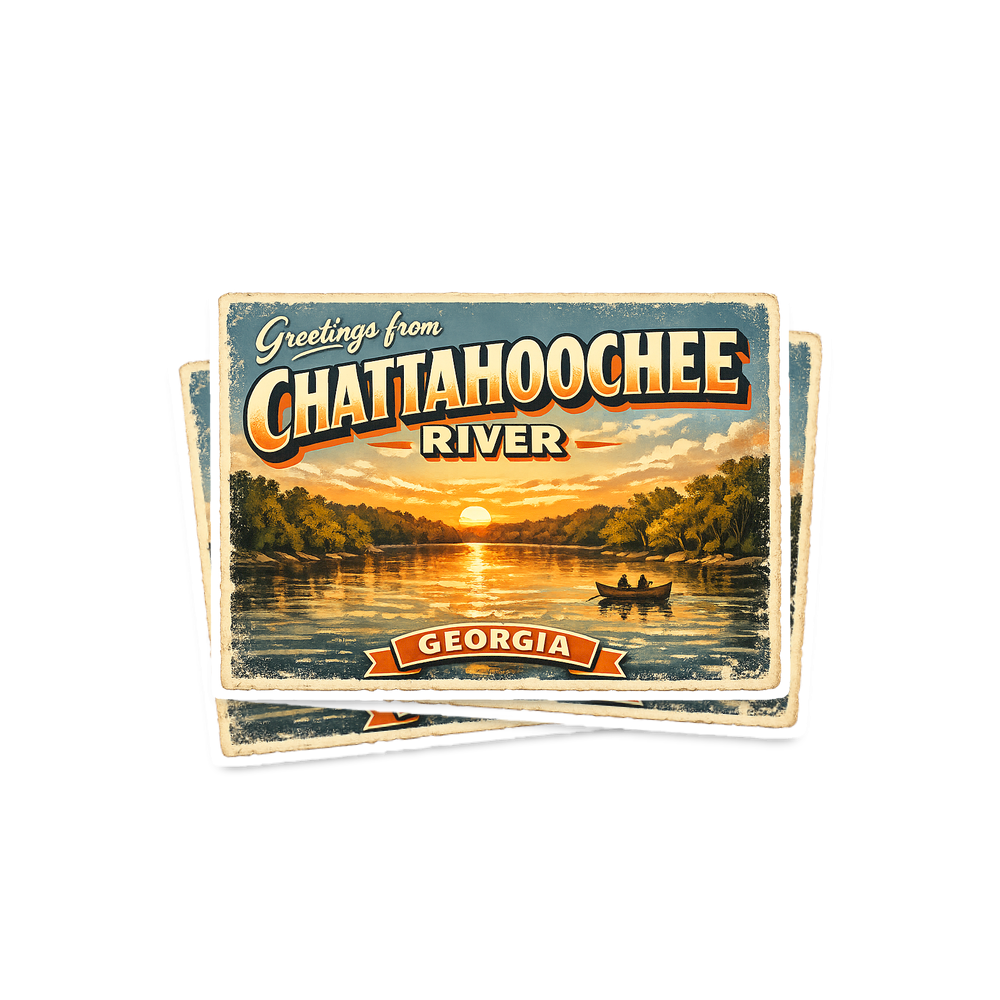The phrase 'Greetings from Chattahoochee River Georgia' serves as a warm welcome from this iconic waterway. It represents local pride, a love for the state's natural beauty, and a connection to the river's recreational activities.