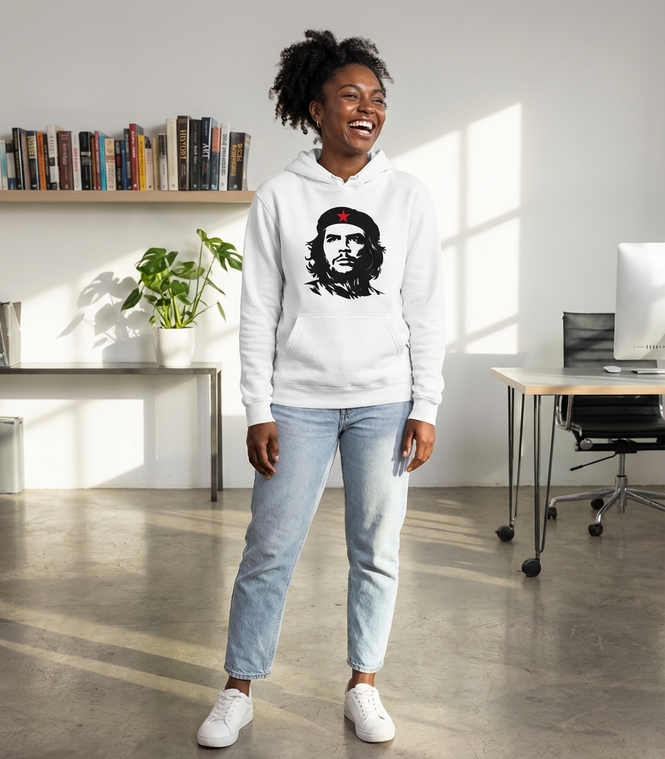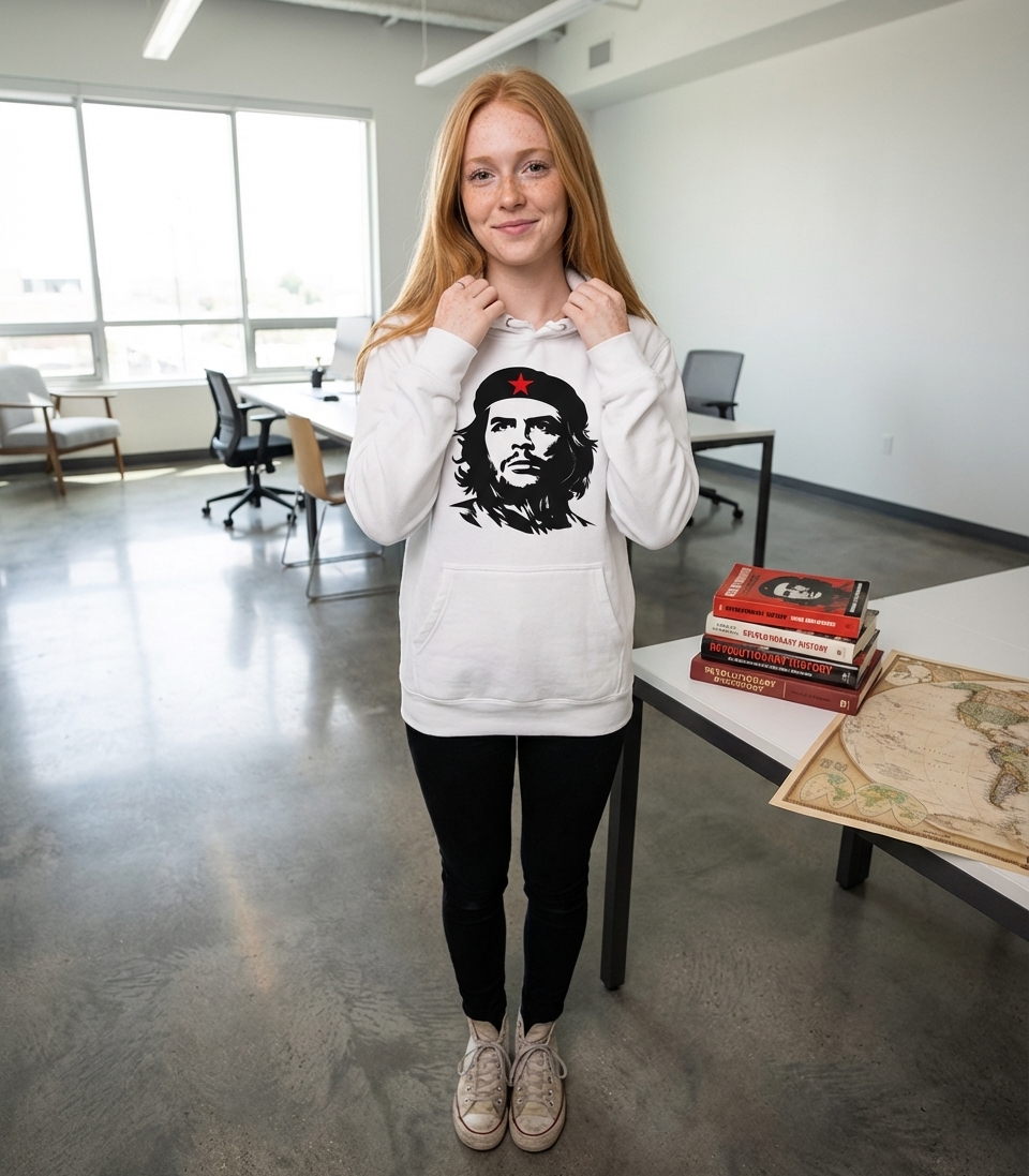 The design primarily relies on the universally recognized visual of Che Guevara, a figure whose image has transcended historical context to become a broader symbol. It represents revolutionary ideals, anti-establishment sentiments, and a commitment to social change for many.