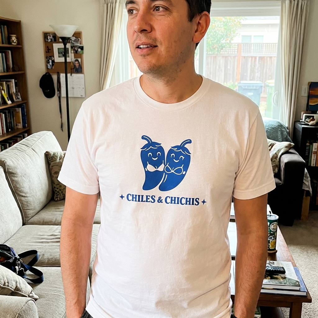 okay, this shirt is exactly what i was hoping for. The 'Chiles & Chichis' vibe is awesome – it's abstract but still totally fun and unique. plus, the fabric is super soft, definitely a new go-to.