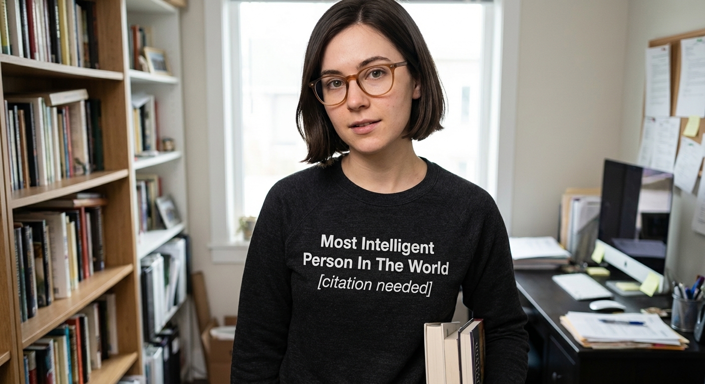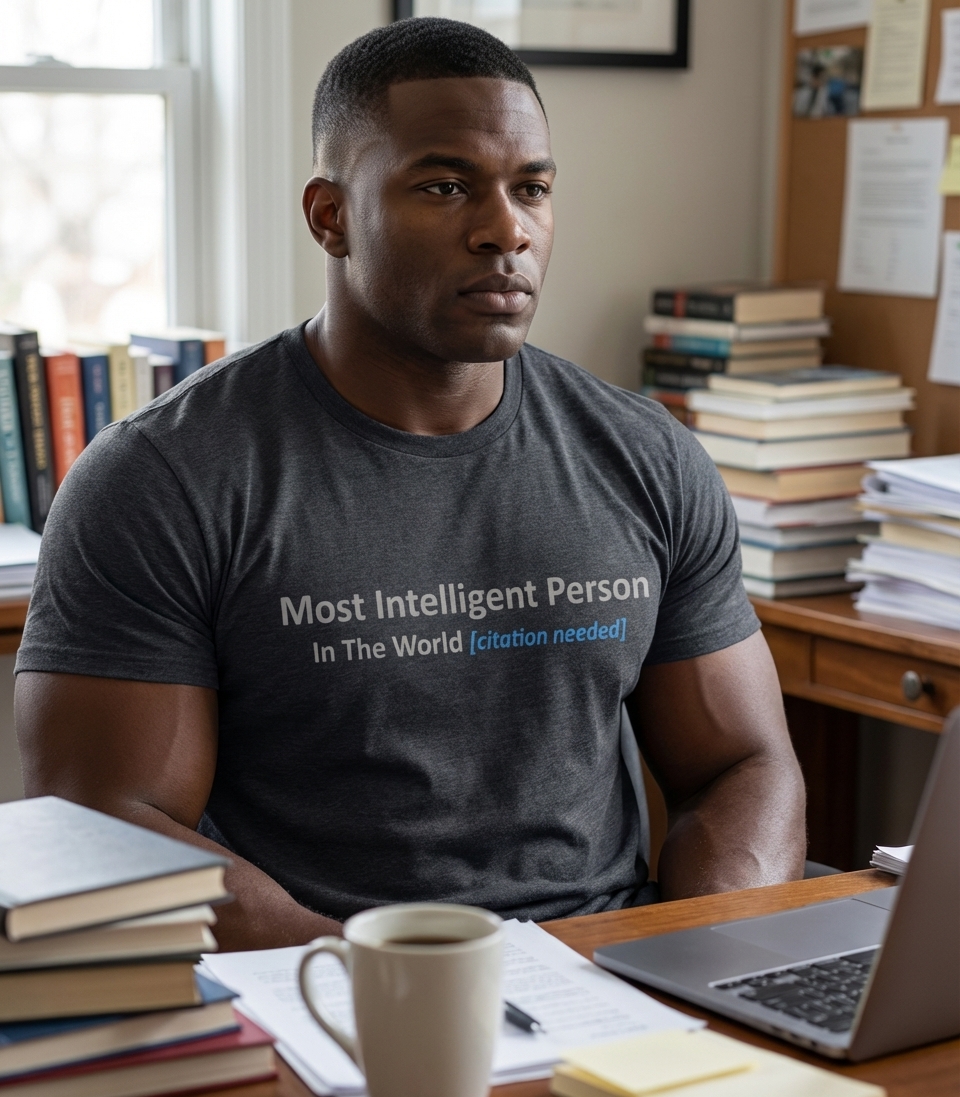 The 'Most Intelligent Person In The World [citation needed]' phrase captures the lifestyle of witty individuals who enjoy intellectual humor, a touch of self-deprecation, and challenging conventional claims.