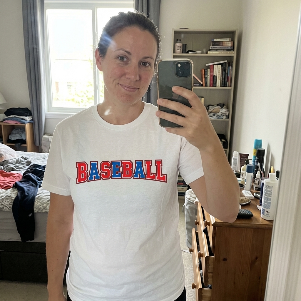 omg i love this t-shirt, it's so soft and the fit is perfect. The classic baseball design is really neat, exactly what I was looking for to just chill or run errands in. Super happy with it!