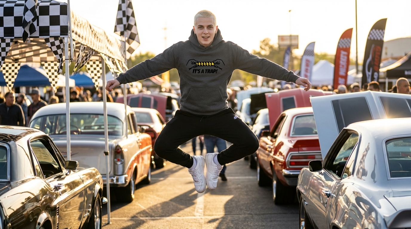 The classic checkerboard pattern captures the aesthetic of racing enthusiasts who appreciate vintage style, speed, and automotive culture.