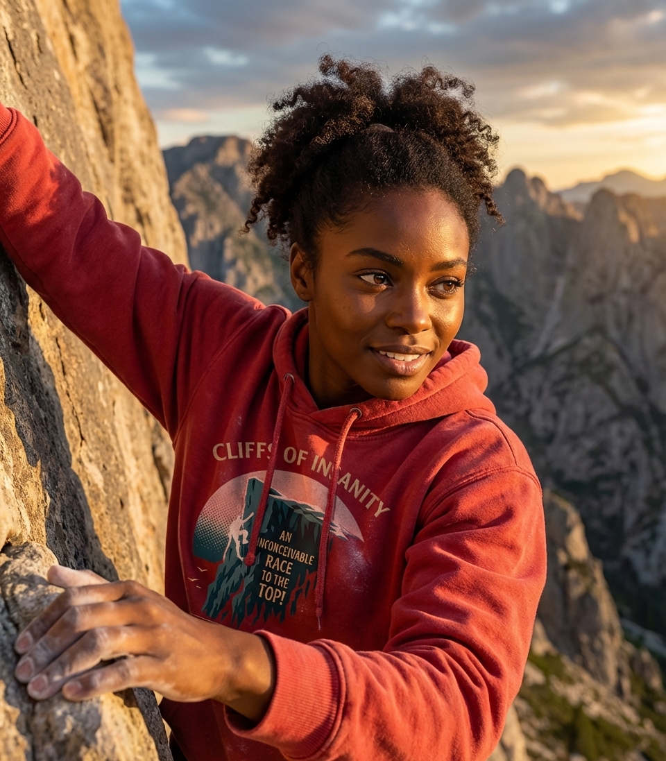 The 'Cliffs of Insanity' design captures the lifestyle of passionate climbers who embrace intense challenges, push their limits, and strive for the summit.