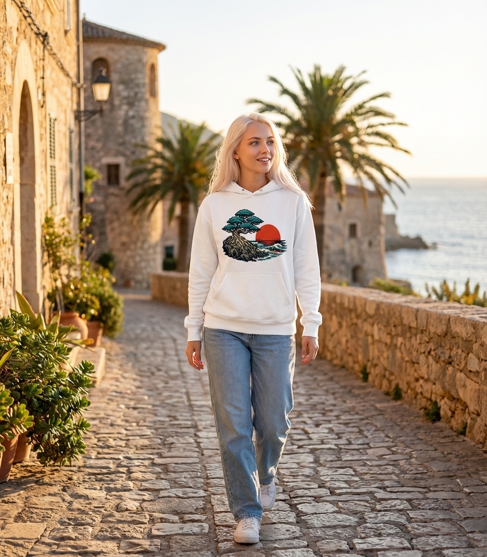 Yes! Check the style selector above to see all available options including hoodies and sweatshirts for the Coastal Bonsai Sunset graphic.