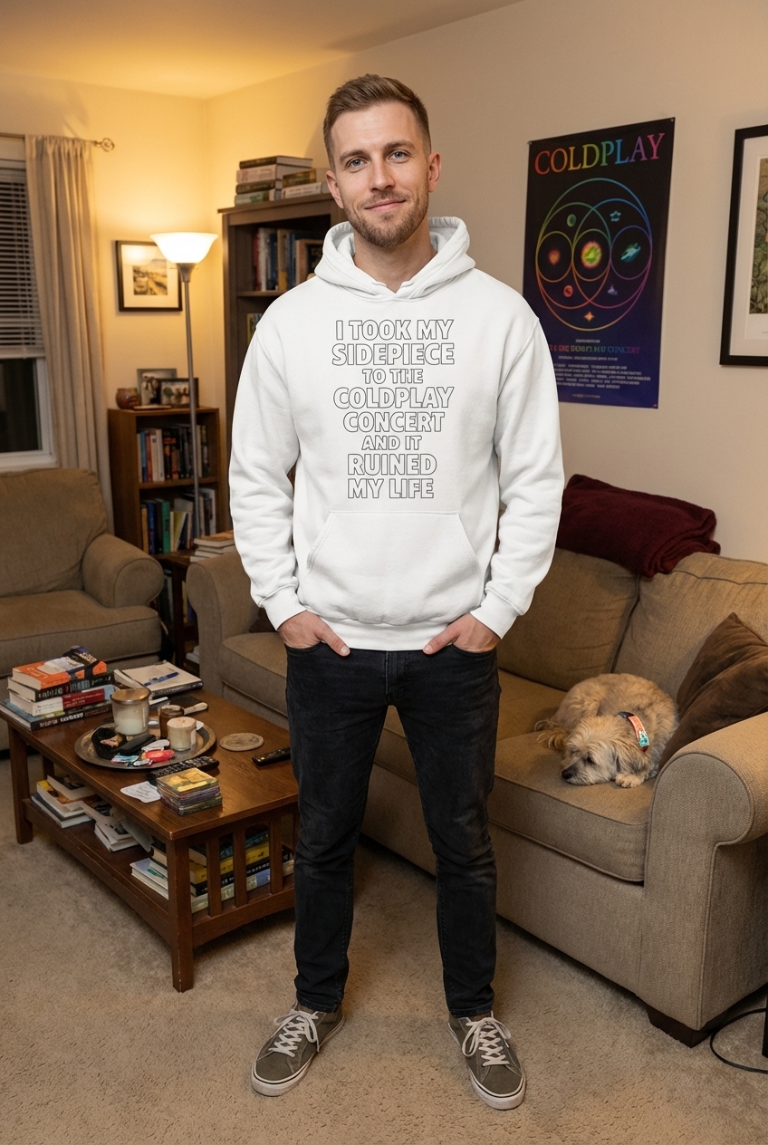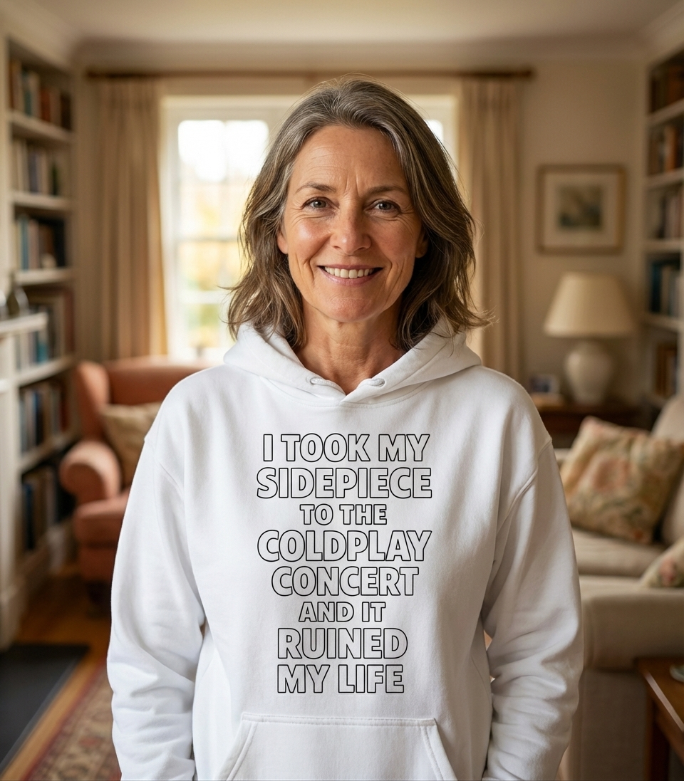 The phrase "I took my sidepiece to the Coldplay concert and it ruined my life" is a classic example of hyperbolic humor. It playfully suggests a disastrous outcome from a clandestine relationship being exposed or complicated by an unexpected event at a public concert.