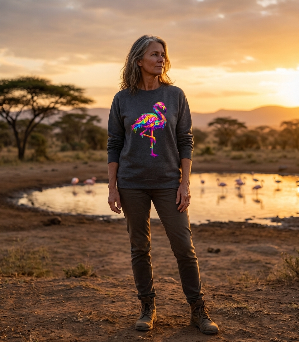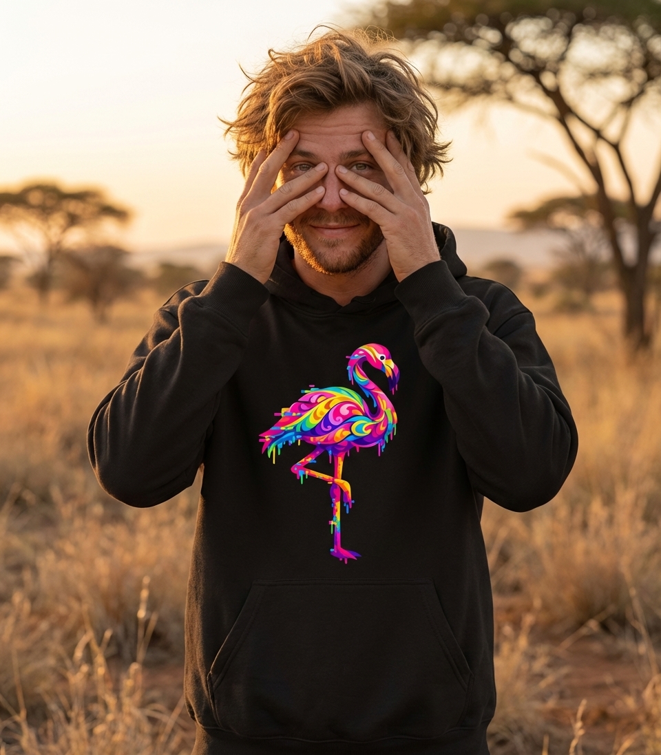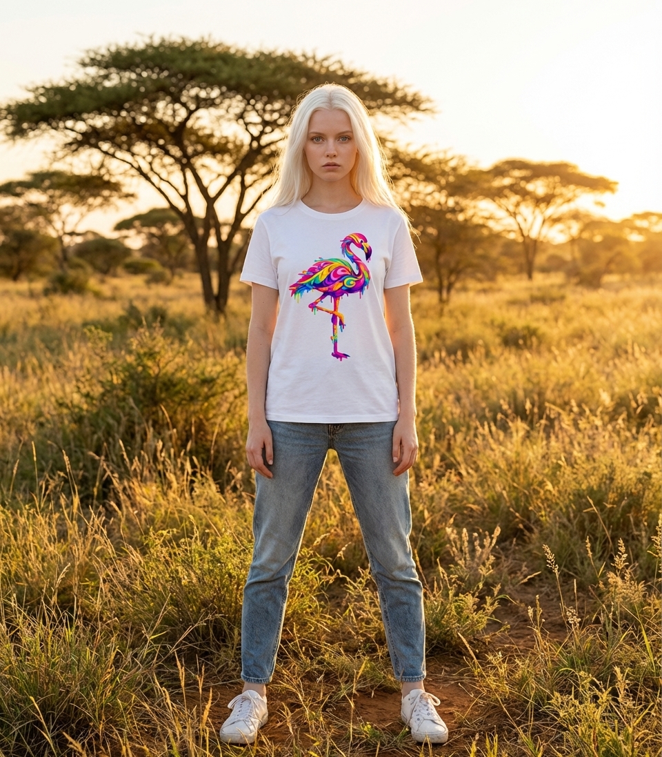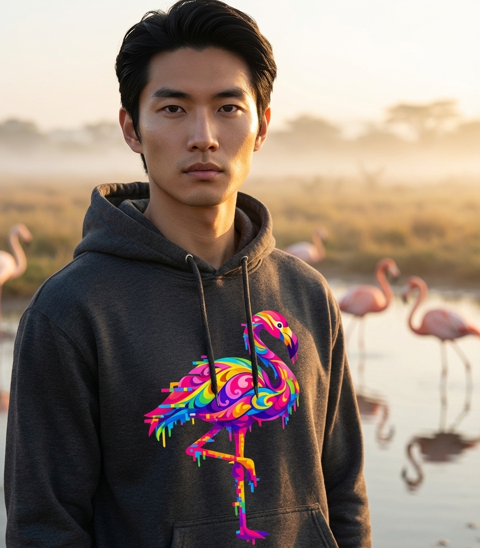 This vibrant flamingo design captures the artistic style of those who appreciate unique wildlife art, bold colors, and a modern, digital aesthetic.