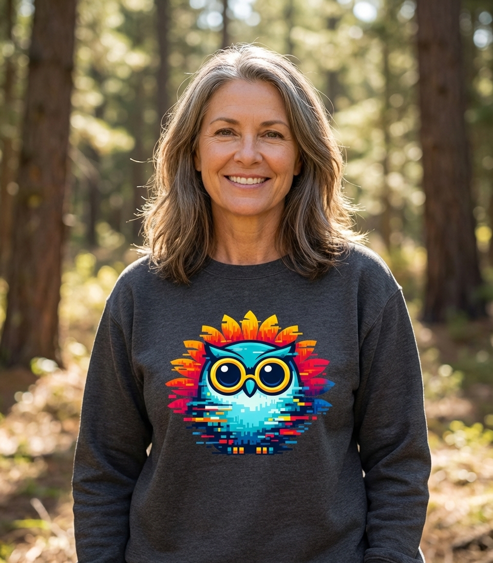 This colorful glitch owl design captures the playful and tech-savvy spirit of digital art enthusiasts who appreciate unique animal graphics.