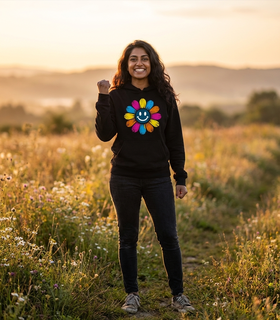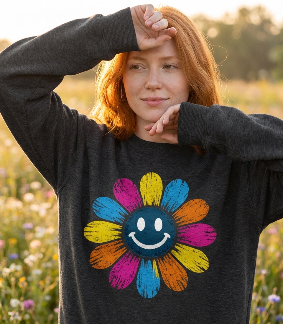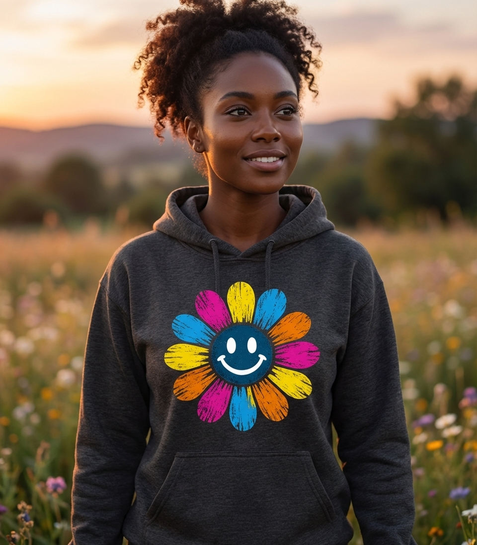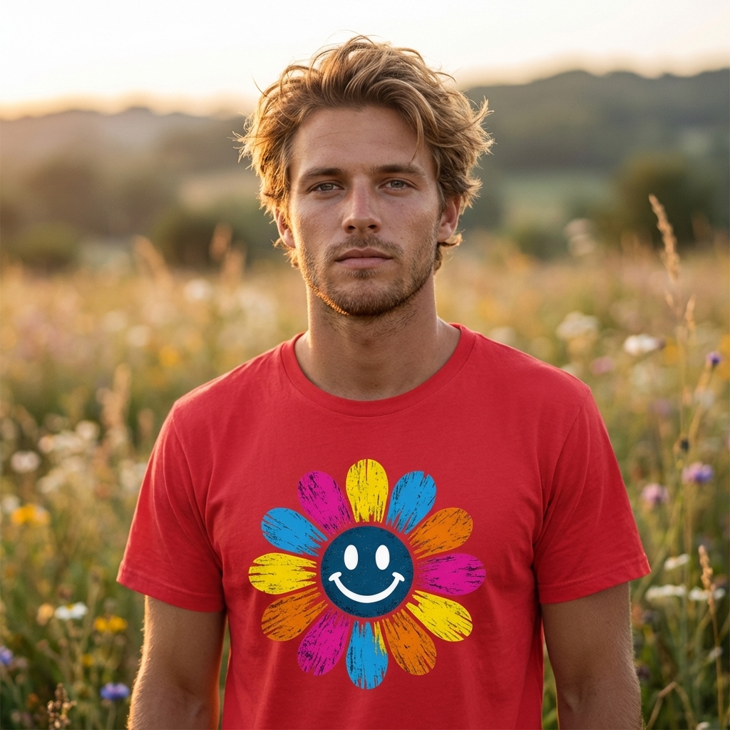 This vibrant smiley flower captures the spirit of cheerful individuals who embrace positivity, retro aesthetics, and a carefree outlook.
