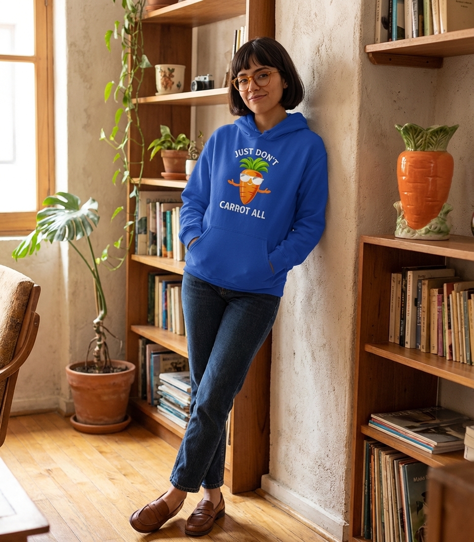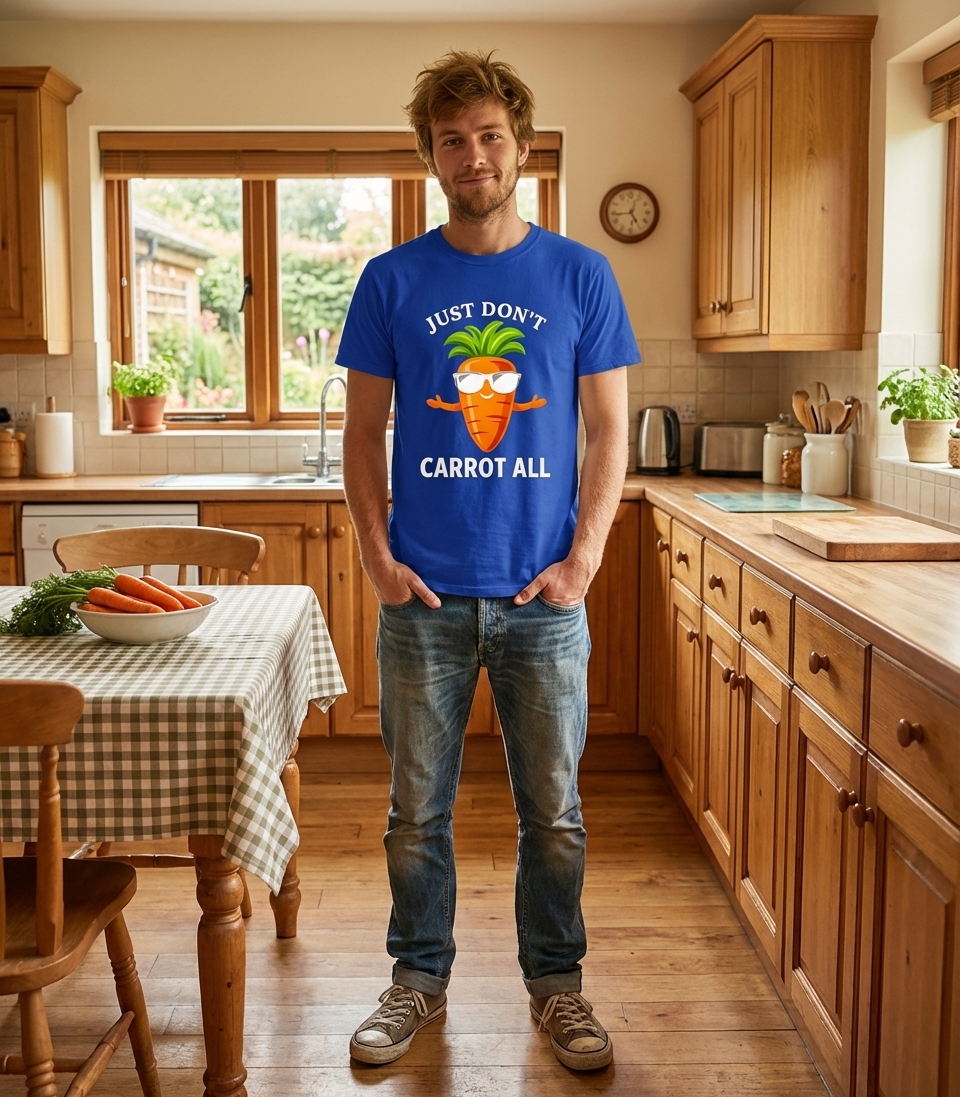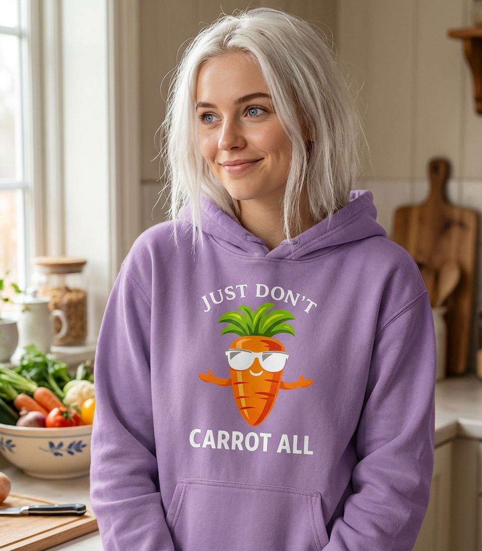 The 'Just Don't Carrot All' phrase captures the lifestyle of those who embrace humor, puns, and a carefree approach to life's everyday worries.