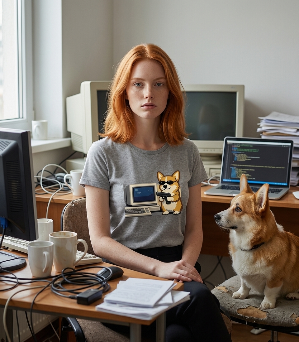 The Corgi Hacker Boss design captures the lifestyle of tech-savvy dog lovers who enjoy retro computing, playful memes, and a hint of rebellious charm.