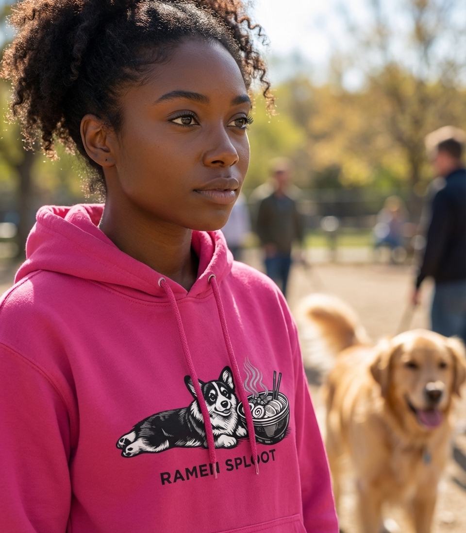 This Corgi Ramen Sploot tee is awesome! The design totally brings a smile to my face, it's so unique and just looks great in person. Super comfy fabric too, really happy with this one.