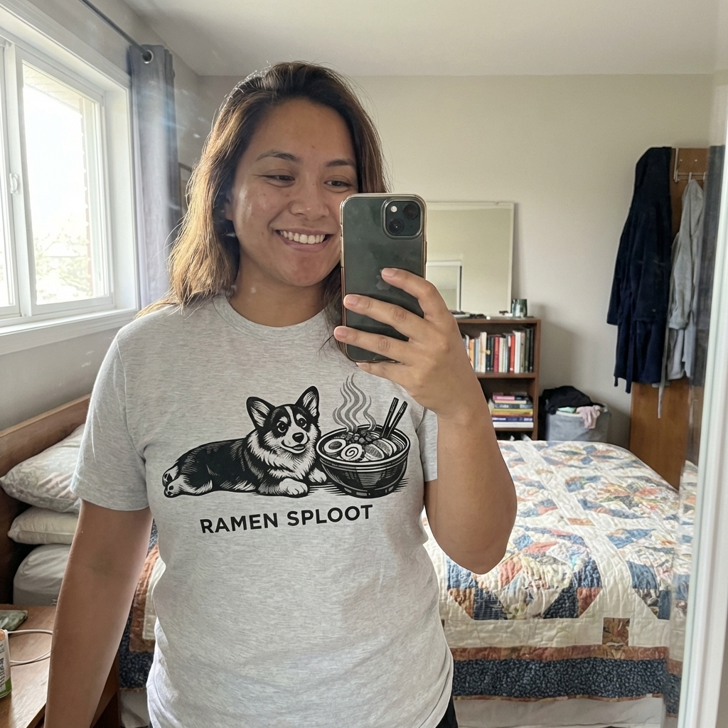 Okay, this shirt is awesome. The Corgi Ramen Sploot design is even cuter in person, and the tee itself is so soft and fits perfectly. Already want to wear it every day lol.