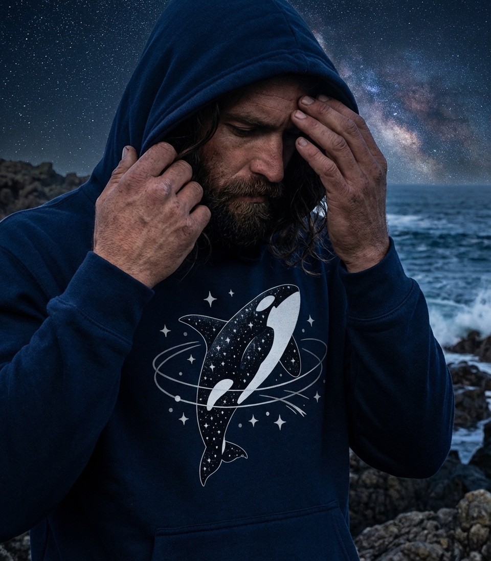 This cosmic orca design captures the majestic beauty of marine life intertwined with the awe of the night sky, perfect for those who dream of deep oceans and distant galaxies.