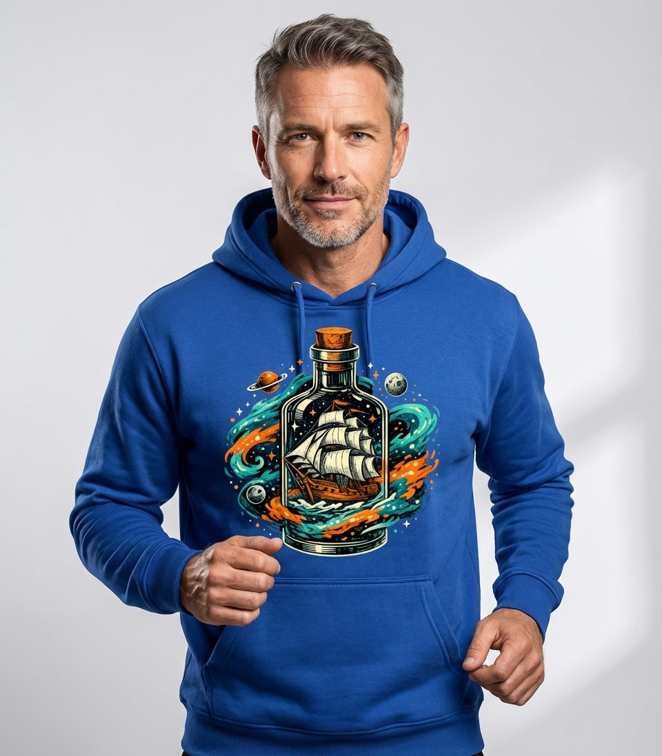 Yes! Check the style selector above to see all available options including hoodies and sweatshirts for the Cosmic Ship Bottle graphic.