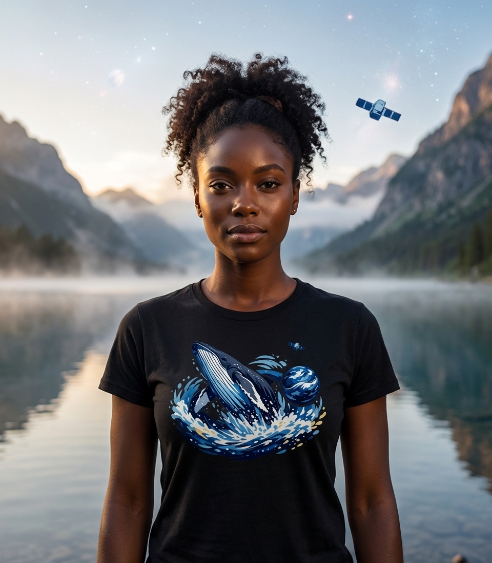 The design itself acts as a visual phrase, conveying a sense of interconnectedness between Earth's ecosystems and the universe at large. It speaks to the awe-inspiring power of nature, both marine and cosmic, and encourages contemplation of our place within a grand, mysterious existence. It symbolizes freedom, exploration, and the boundless potential of imagination.