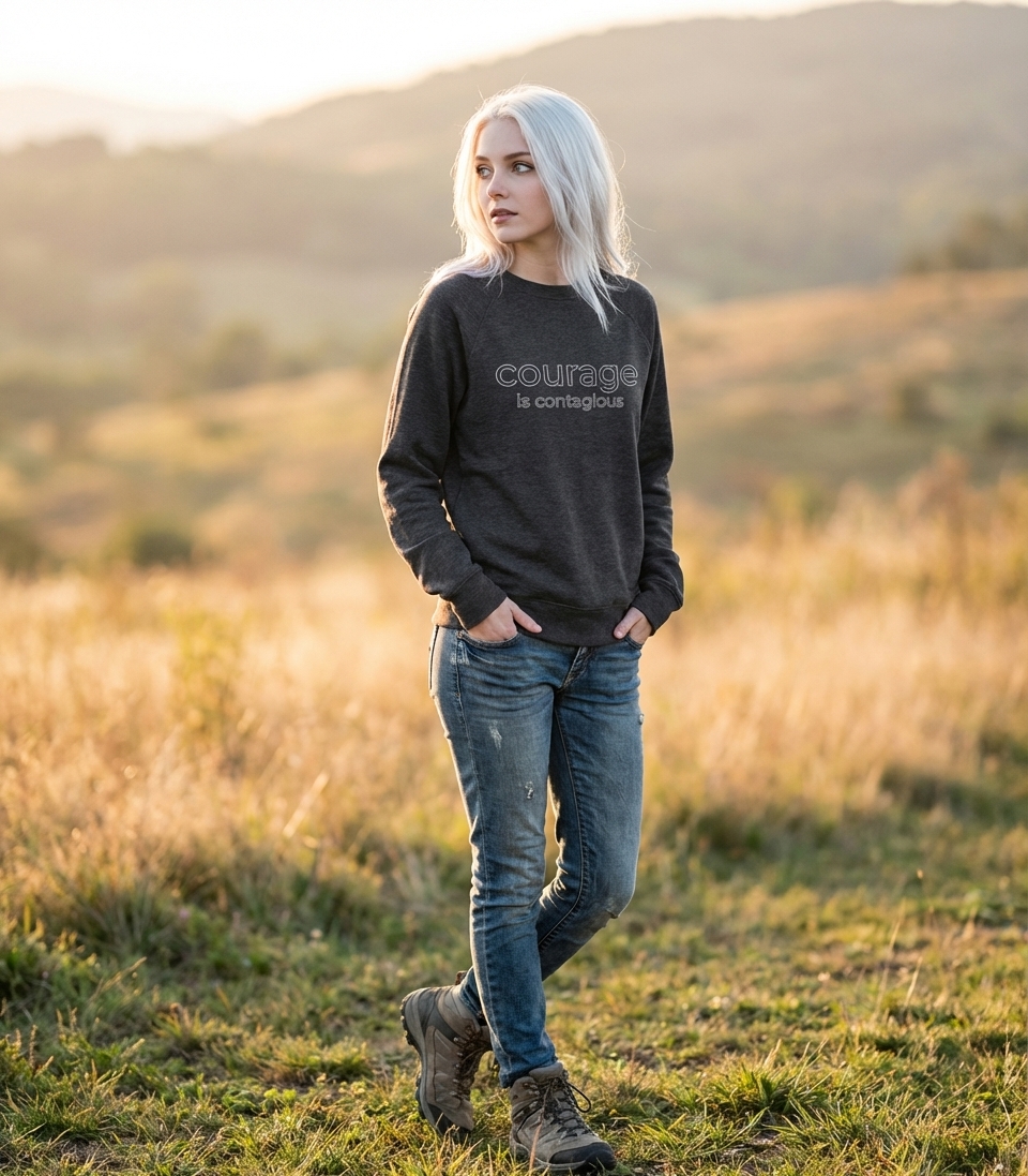 The 'Courage Is Contagious' phrase captures the lifestyle of those who believe in inspiring others, facing challenges, and spreading bravery.