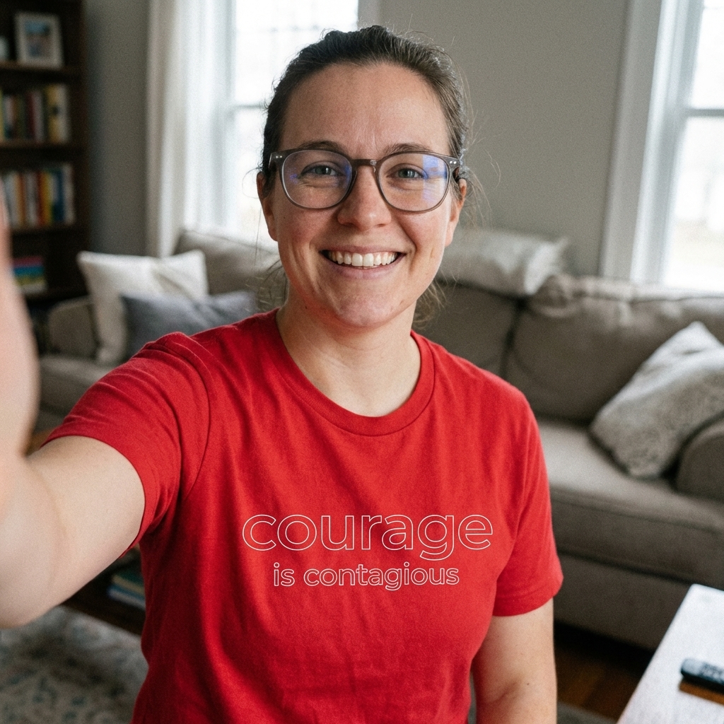okay so this 'courage is contagious' tee is seriously awesome, the message really resonated with me. Plus, it's actually super comfy and fits great, honestly thinking about getting another one.