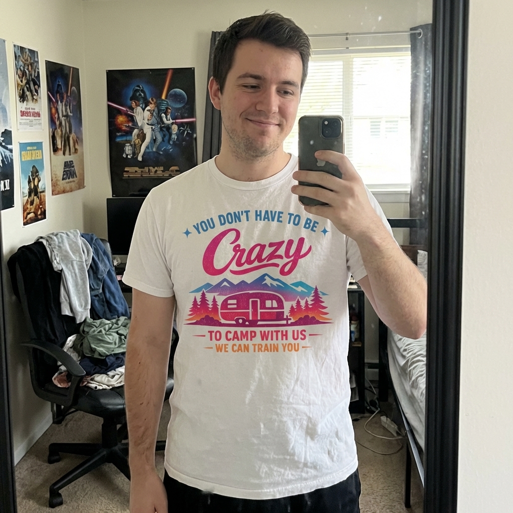 Okay, so this 'Crazy Camp Training' shirt? It's seriously soft, way better than I expected. The abstract design is super cool too, not just another boring graphic tee – definitely a new favorite.