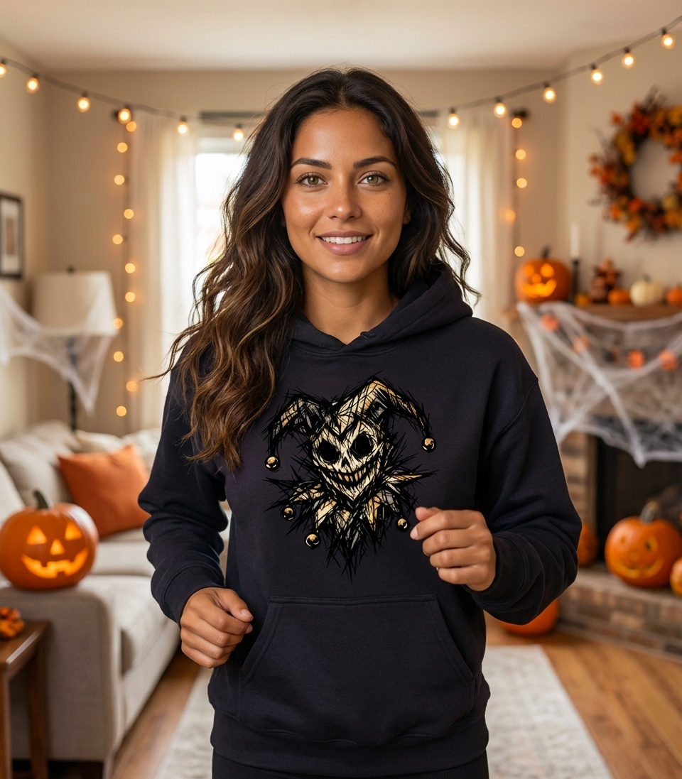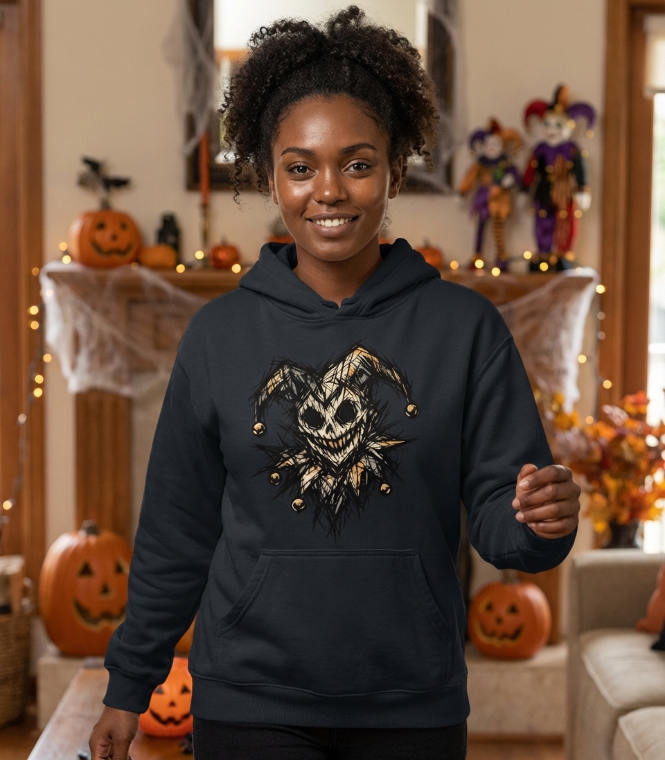 Yes! Check the style selector above to see all available options including hoodies and sweatshirts for the Creepy Jester Skull graphic.