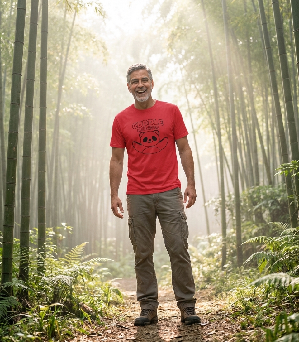 This design features an adorable, friendly panda with open arms, ready for a warm embrace. The charming illustration is accompanied by the playful text "CUDDLE MONSTER" in a bold, rounded font.