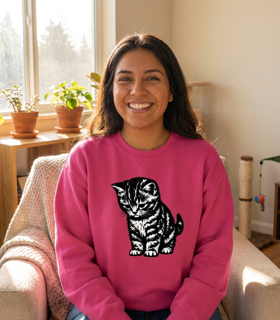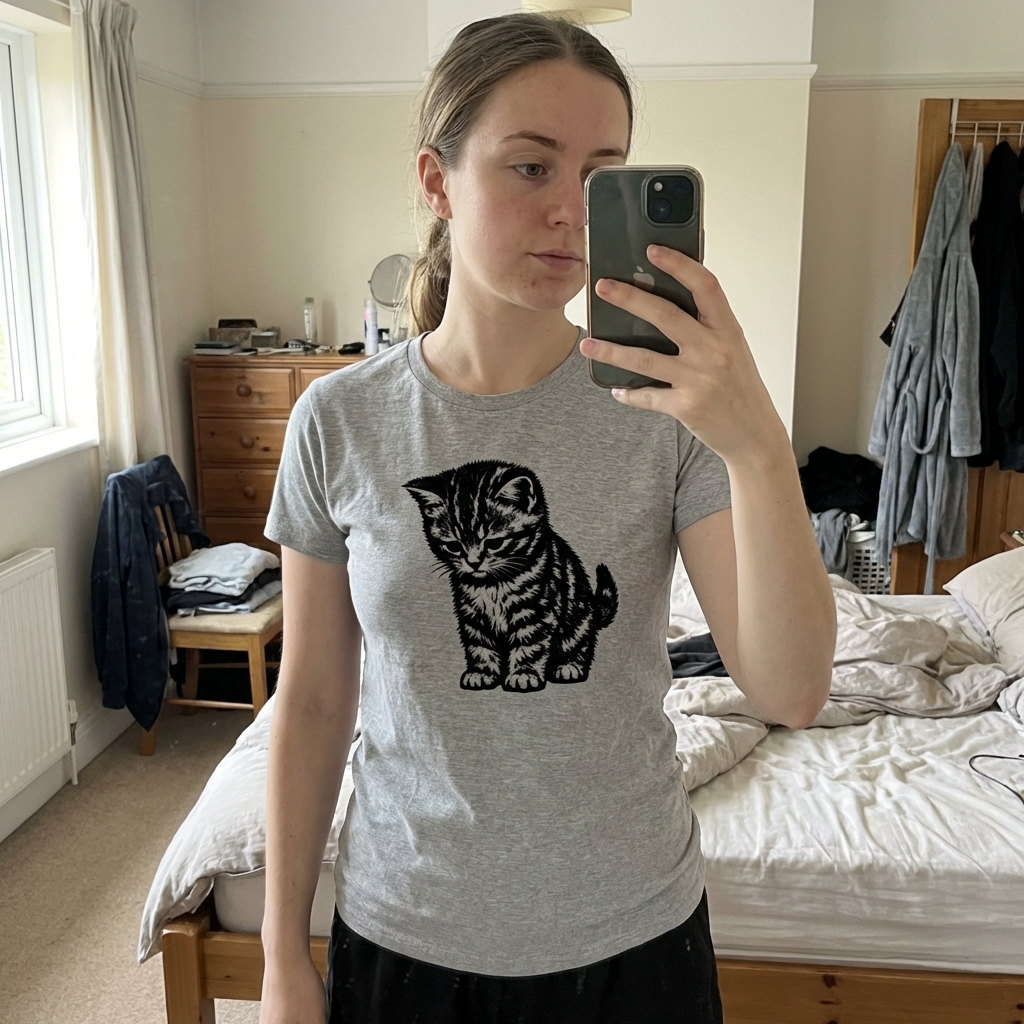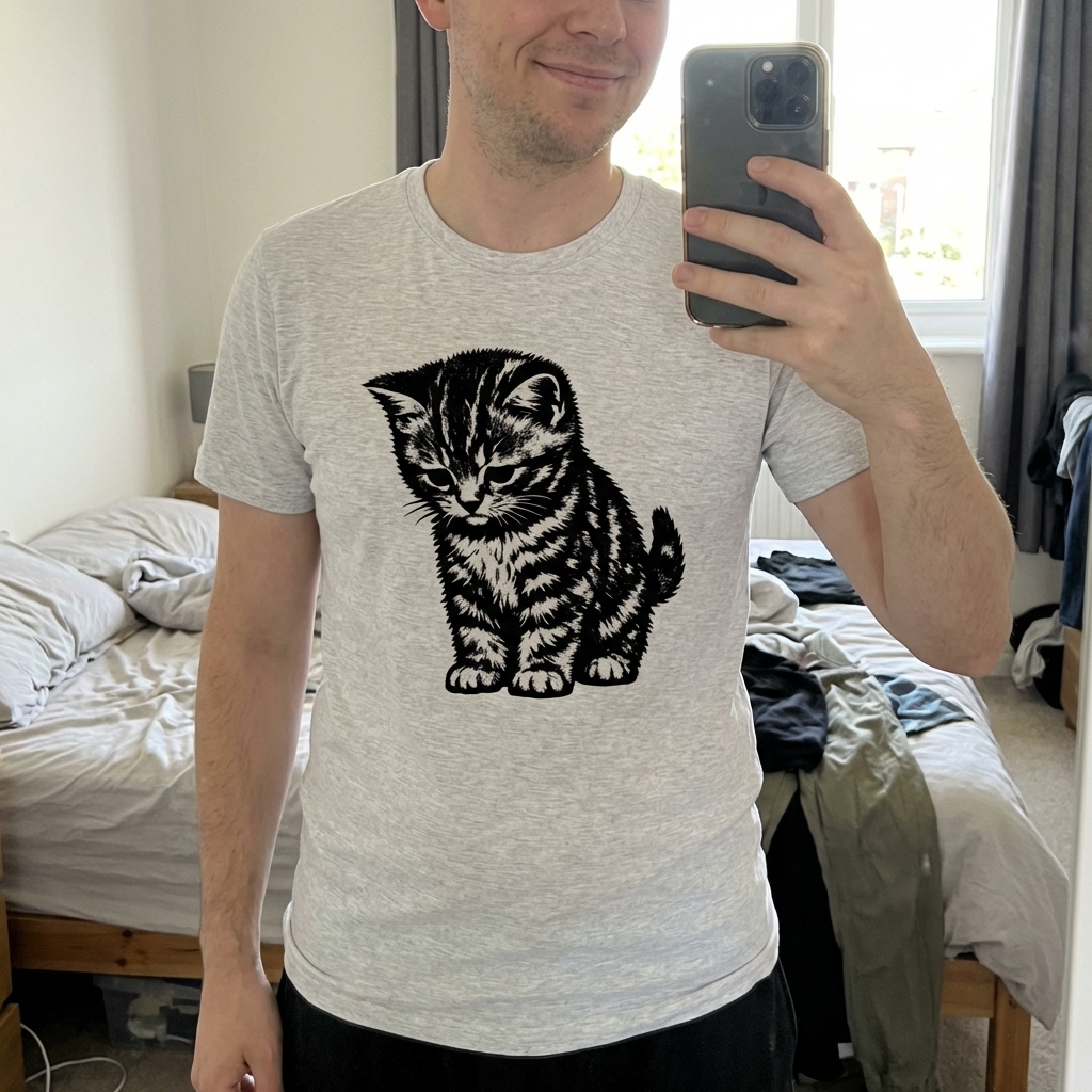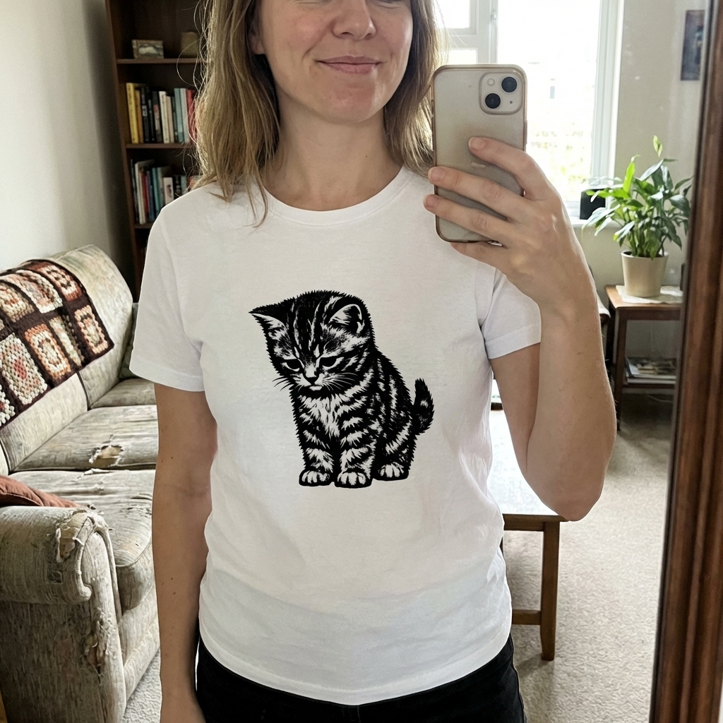 Okay, this kitten shirt is seriously cute – the design is just so charming and not overwhelming at all. It's super comfy too, good quality fabric that feels nice for everyday wear. Definitely a new favorite!