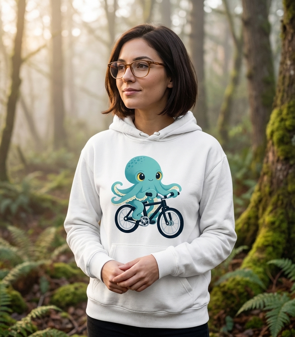 Yes! Check the style selector above to see all available options including hoodies and sweatshirts for the Octopus Riding Bicycle graphic.