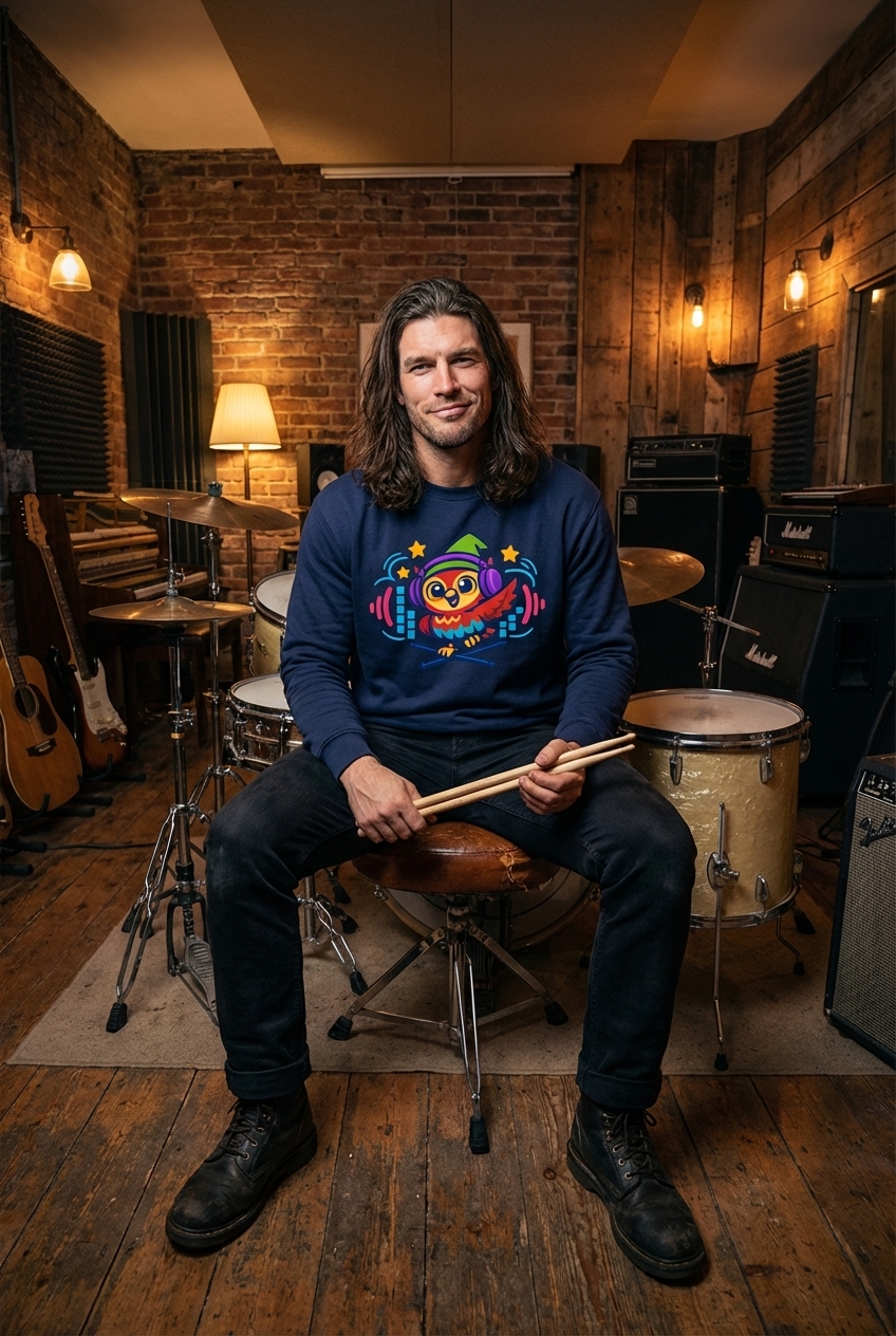 The Cute Owl Drummer design captures the vibrant lifestyle of passionate percussionists who love playful art and enjoy expressive musical rhythms.
