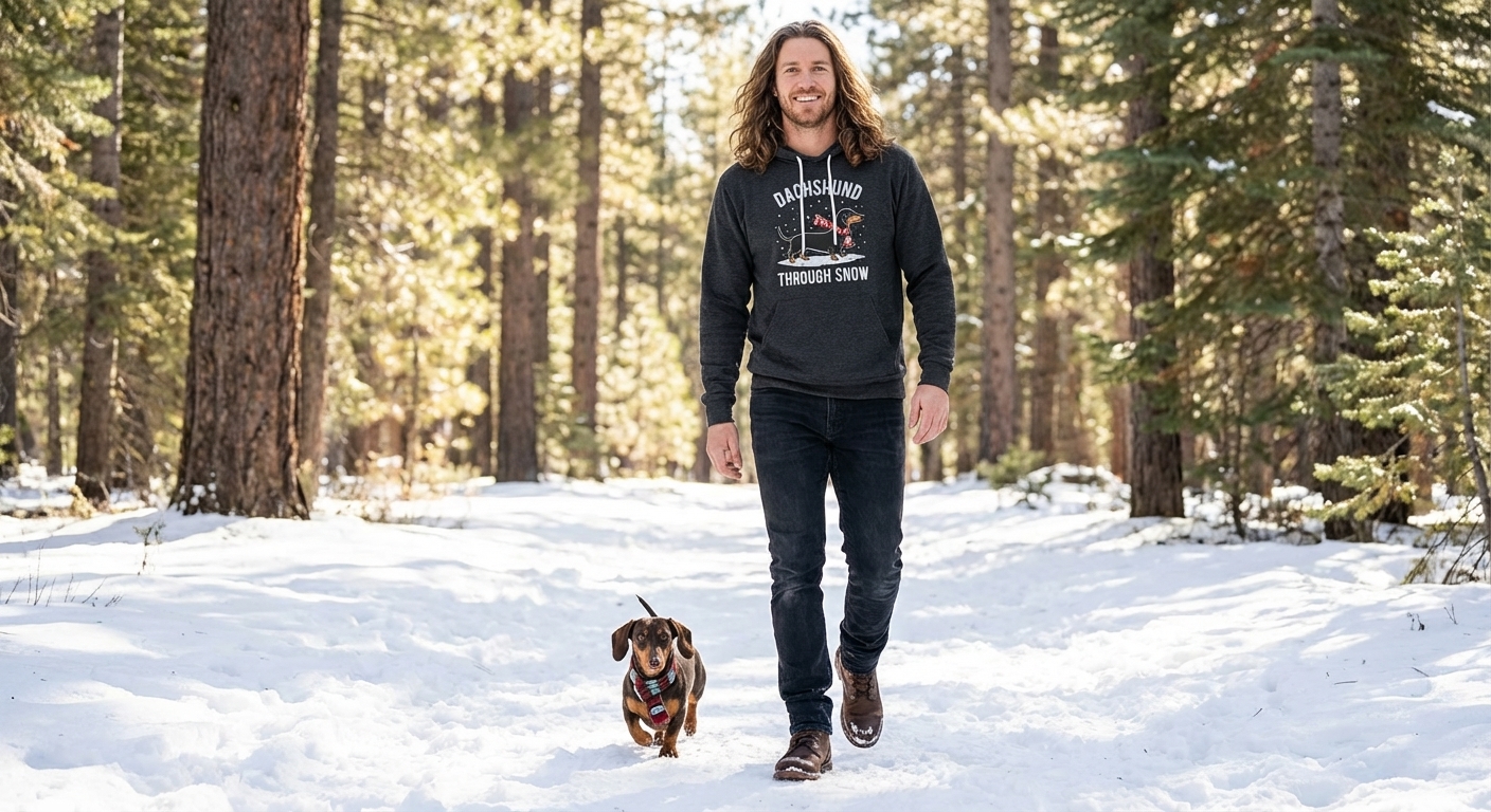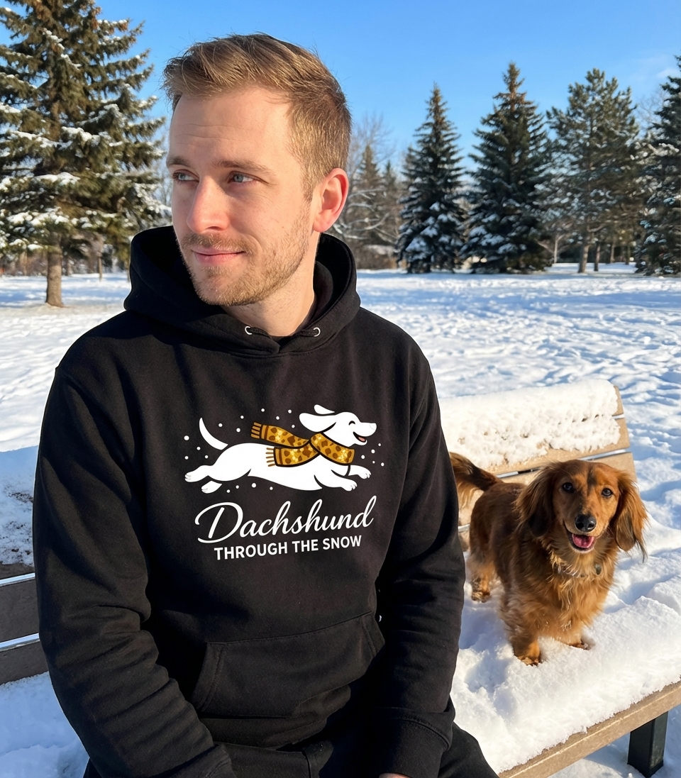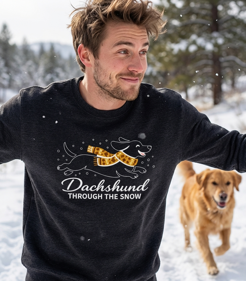 The 'Dachshund Through The Snow' phrase captures the playful spirit of dog lovers who enjoy festive winter fun, holiday cheer, and adorable canine companions.