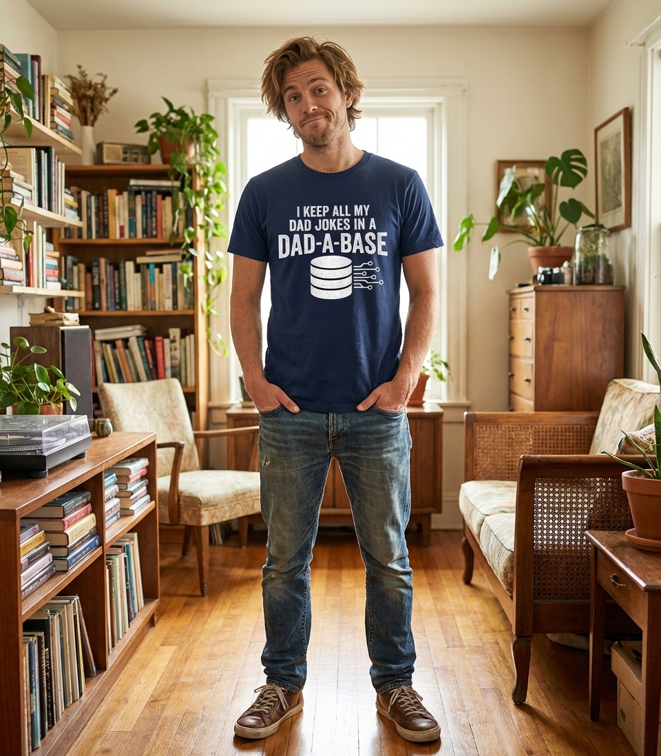 okay so this dad jokes dad-a-base shirt is actually hilarious, exactly what I was hoping for. it's super soft too, surprisingly good quality for a graphic tee. totally recommend grabbing one if you're into that kinda humor!