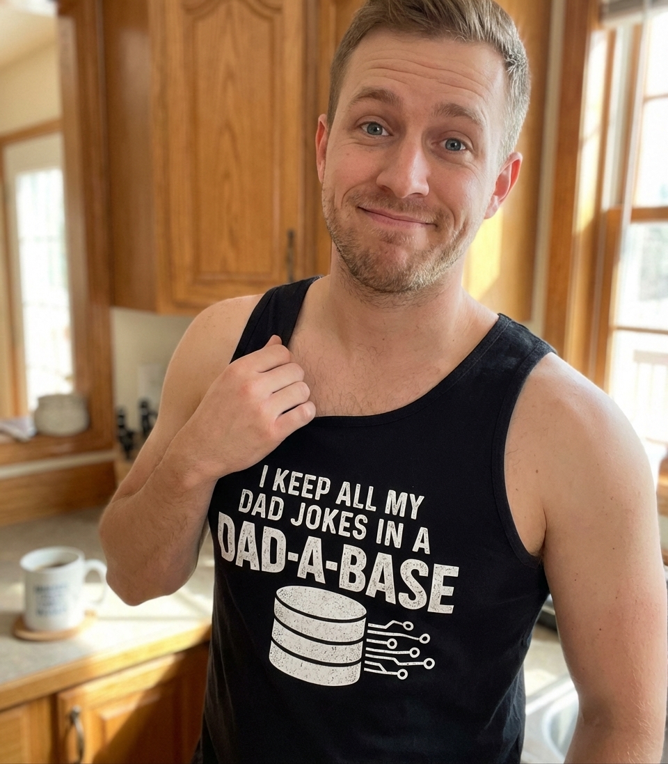 The "Dad-A-Base" phrase captures the lifestyle of witty fathers who love to share groan-worthy jokes, embrace tech culture, and bring smiles to faces.