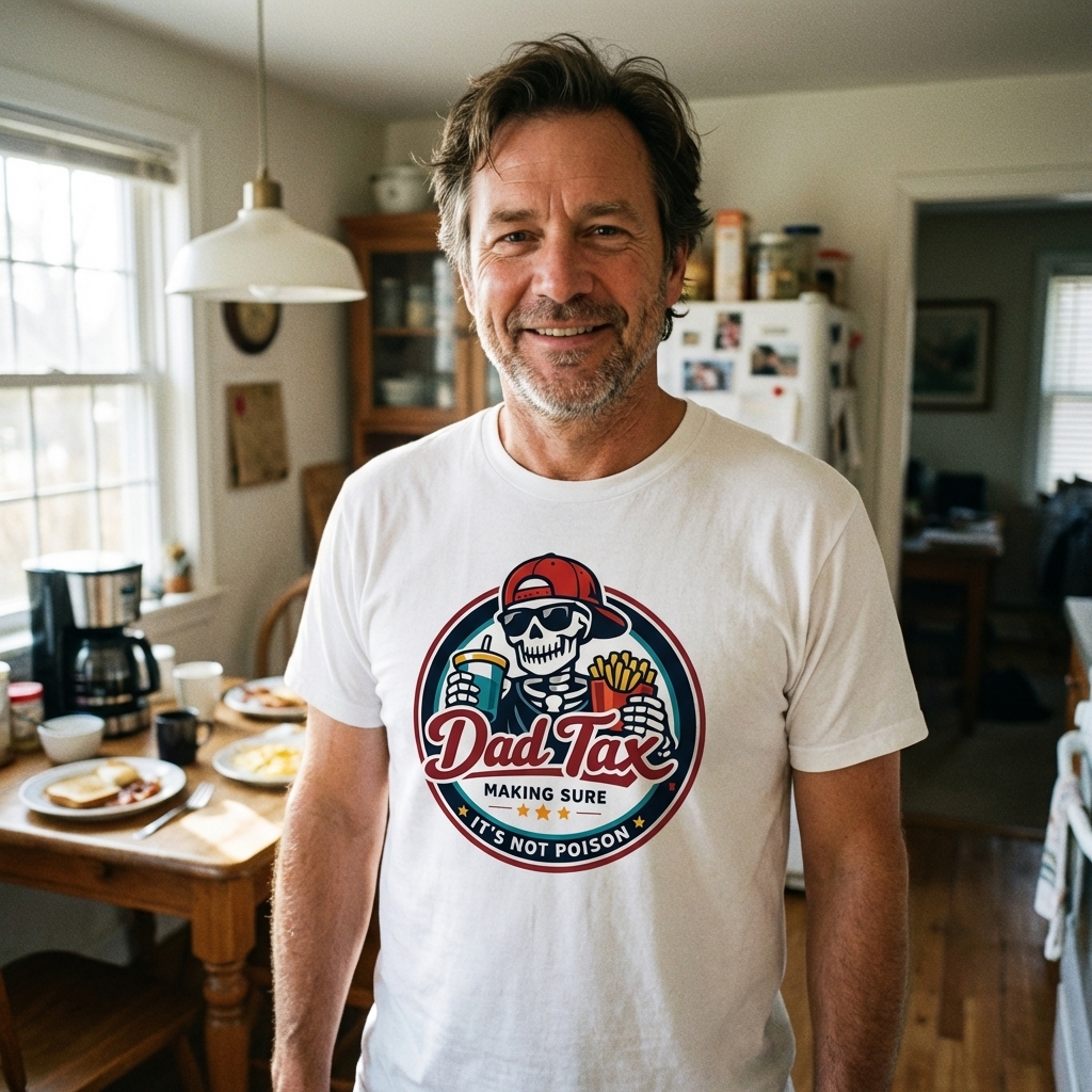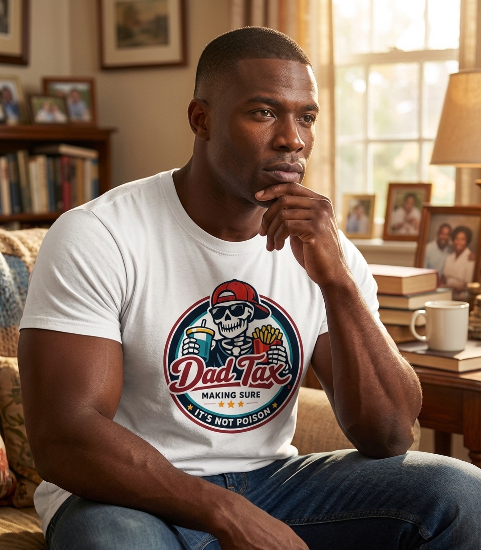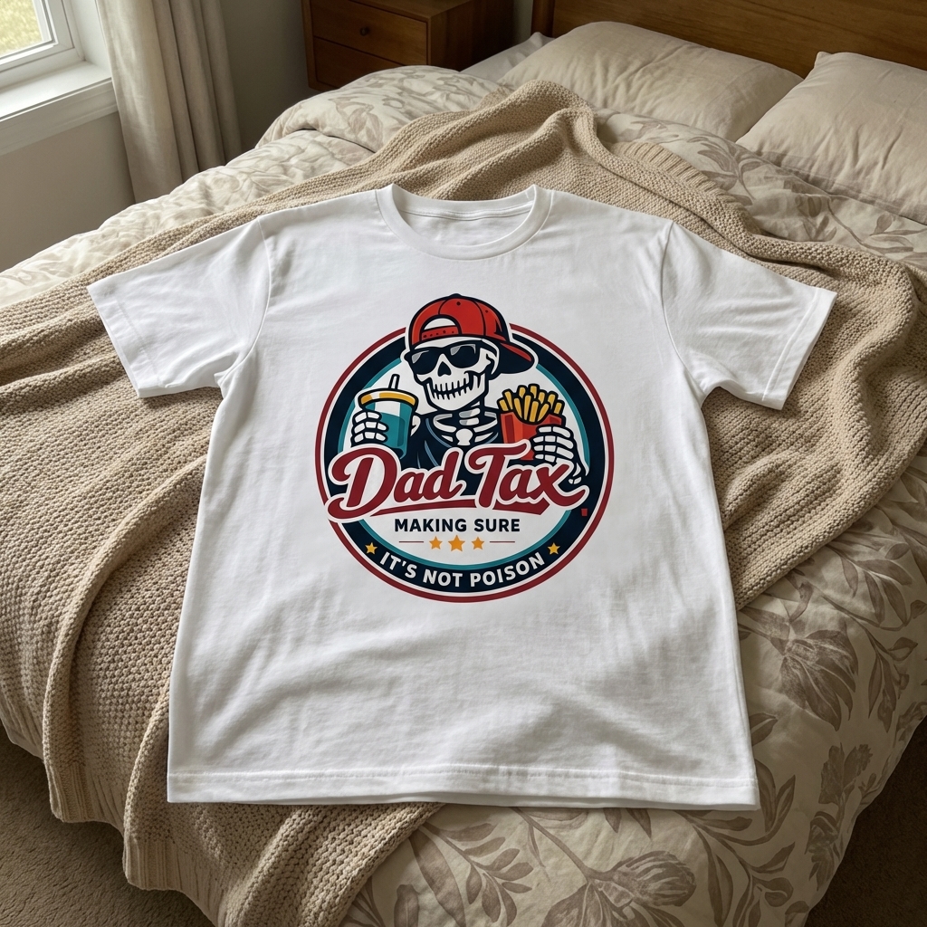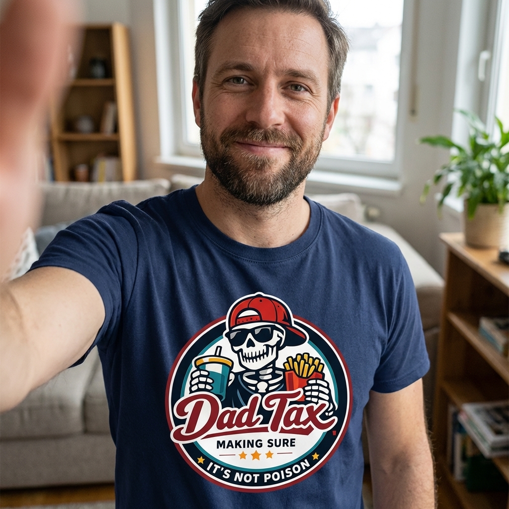 Okay, this 'dad tax' tee is absolutely brilliant, totally cracked me up. Seriously nice material too, soft and comfy, not that cheap scratchy stuff. The design looks even cooler in real life, really sharp print.