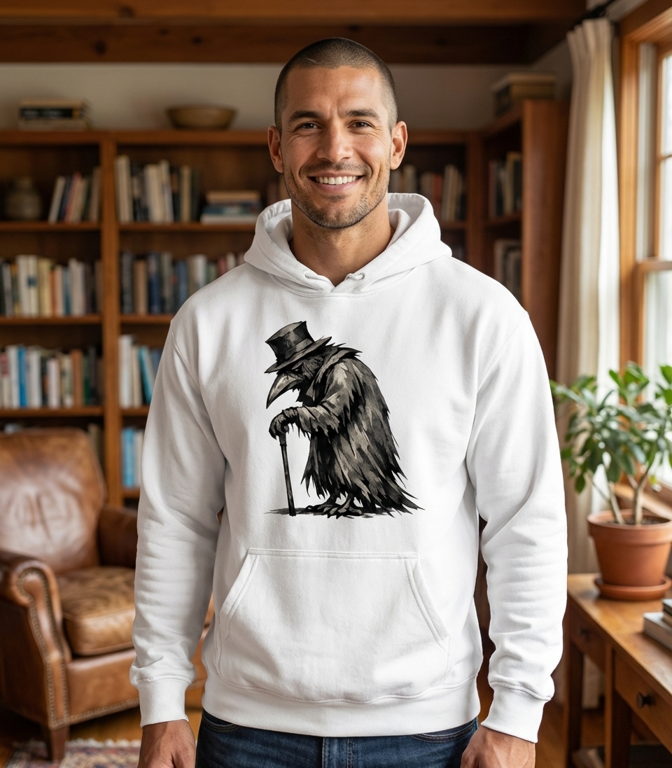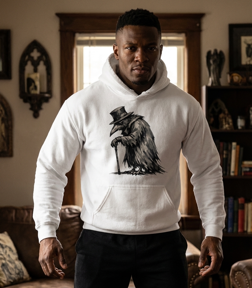 The enigmatic dark art design captures the mood of those who appreciate mystery, gothic aesthetics, and unique character illustrations.