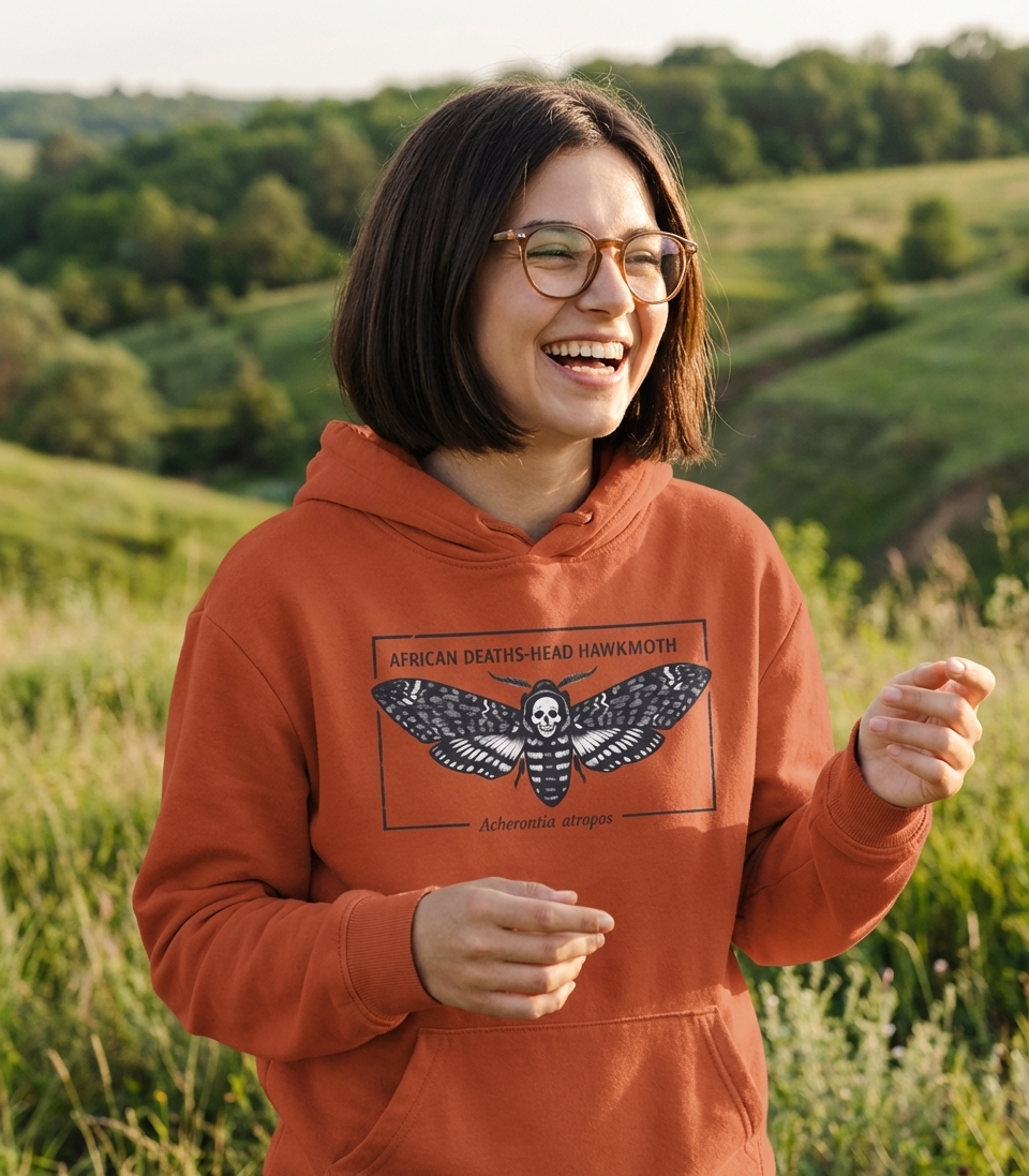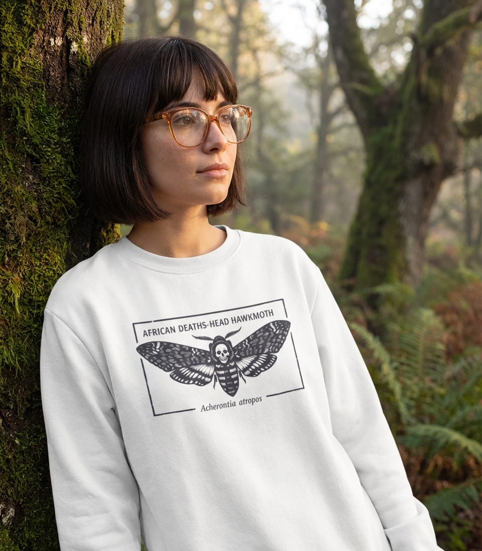 The Deaths-Head Hawkmoth design captures the fascination of natural history enthusiasts who appreciate unique insect patterns, gothic aesthetics, and scientific nomenclature.