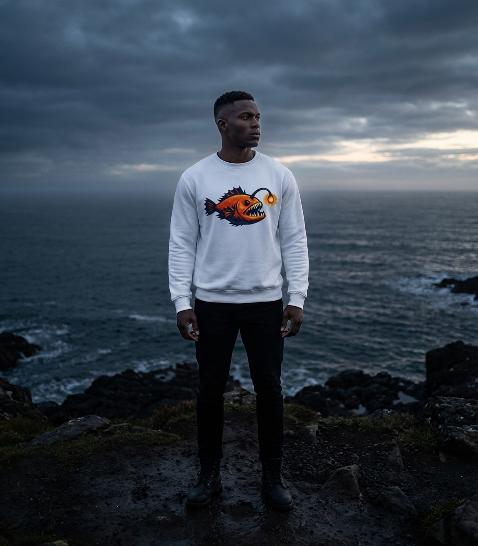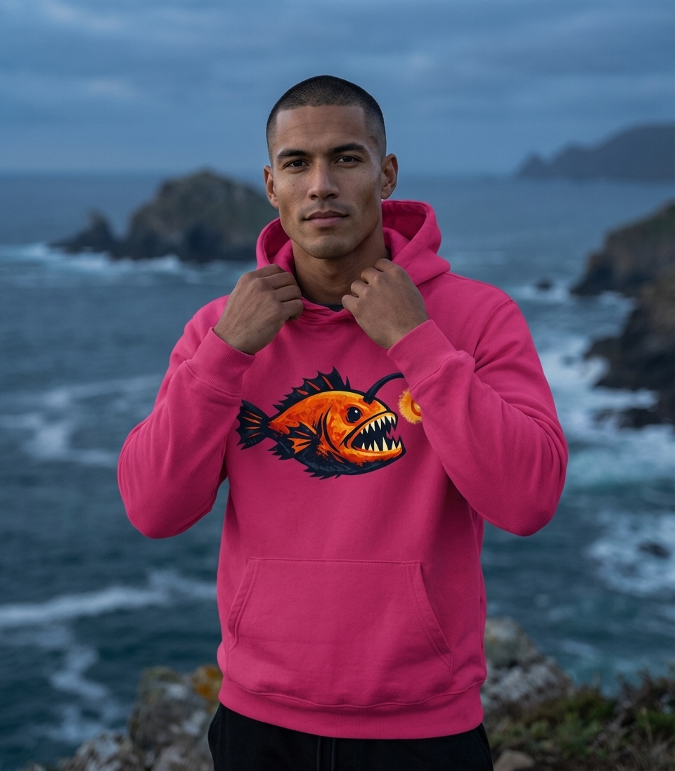 The deep-sea anglerfish design captures the mystery and awe of marine life, appealing to ocean enthusiasts, divers, and those fascinated by creatures of the abyss.
