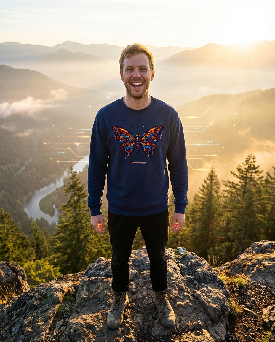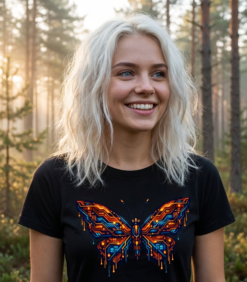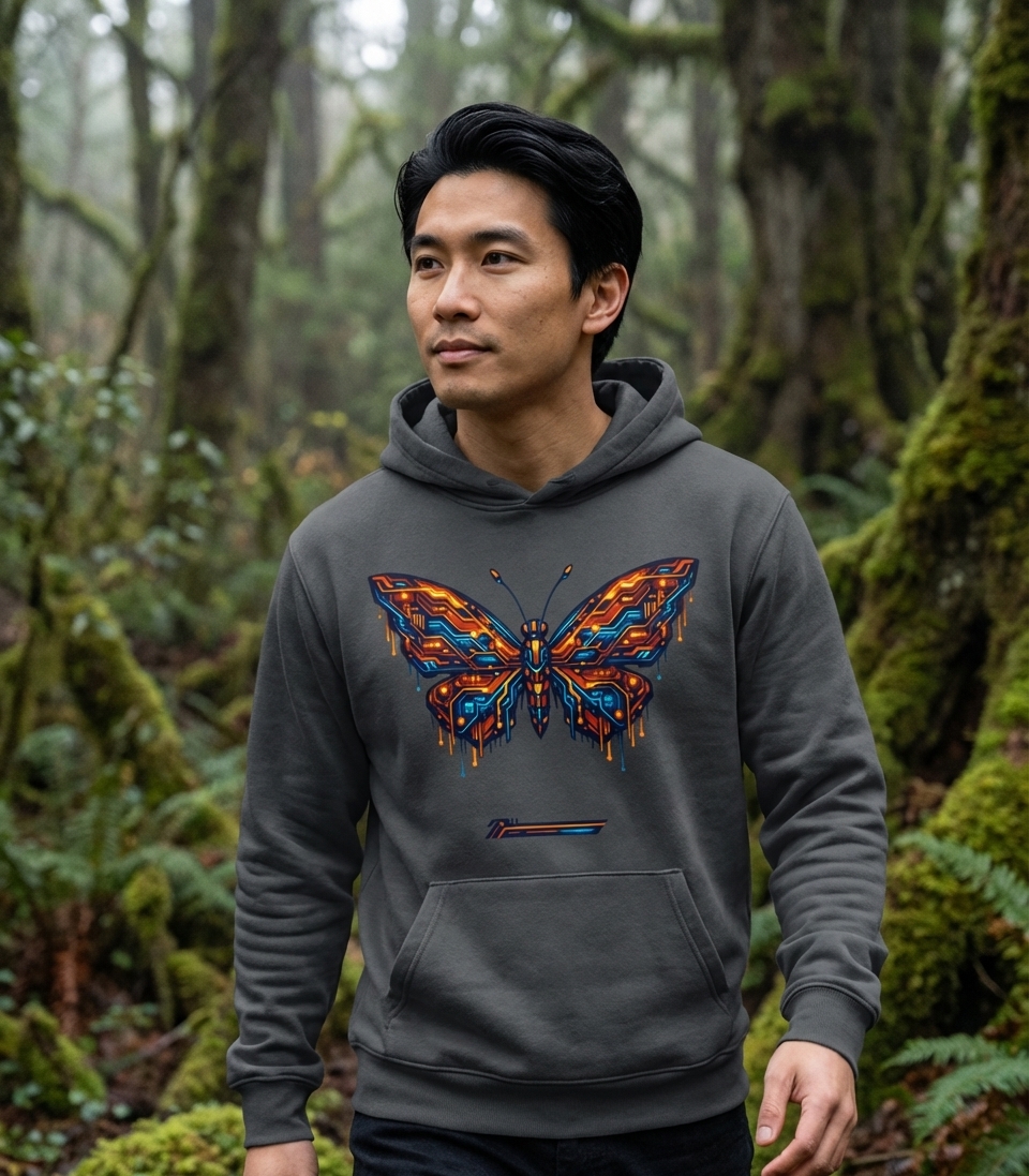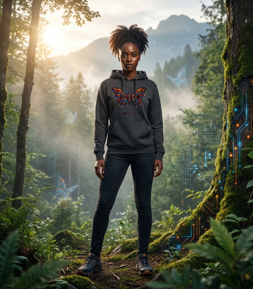 The digital butterfly design symbolizes transformation, innovation, and the harmonious blend of the natural and artificial. It represents a future where technology enhances, rather than detracts from, the inherent beauty of the world.