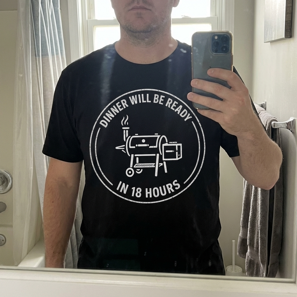 The phrase "Dinner Will Be Ready In 18 Hours" is a humorous and knowing nod to the dedication required for true slow-smoked barbecue. It signifies patience, the long hours spent tending to the pit, and the ultimate reward of tender, flavorful meat that only time and low heat can achieve.