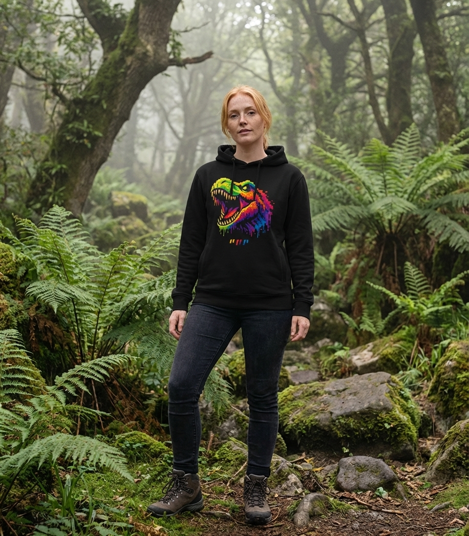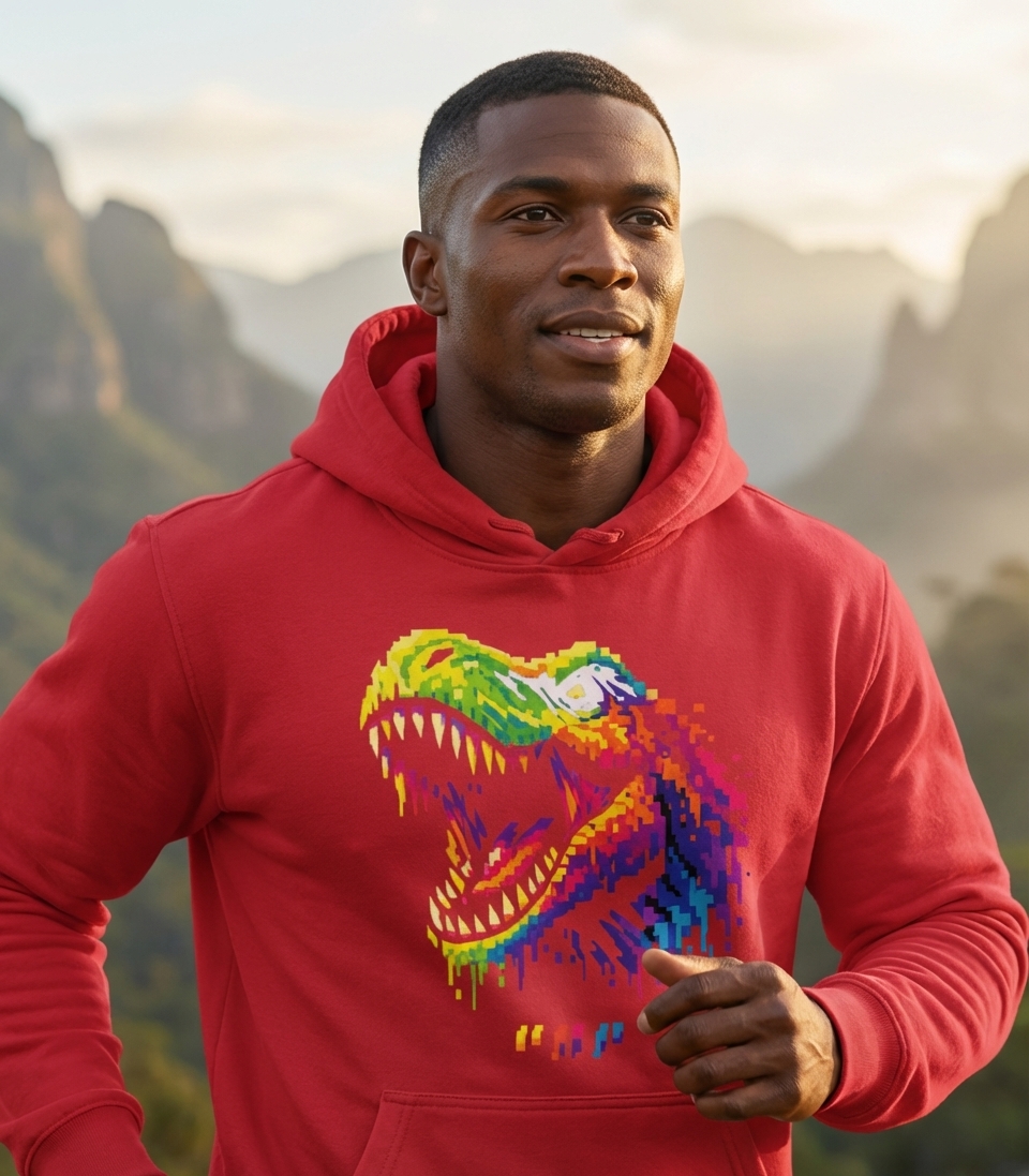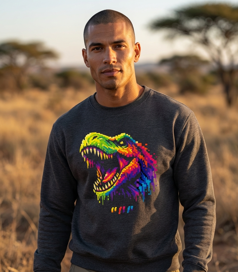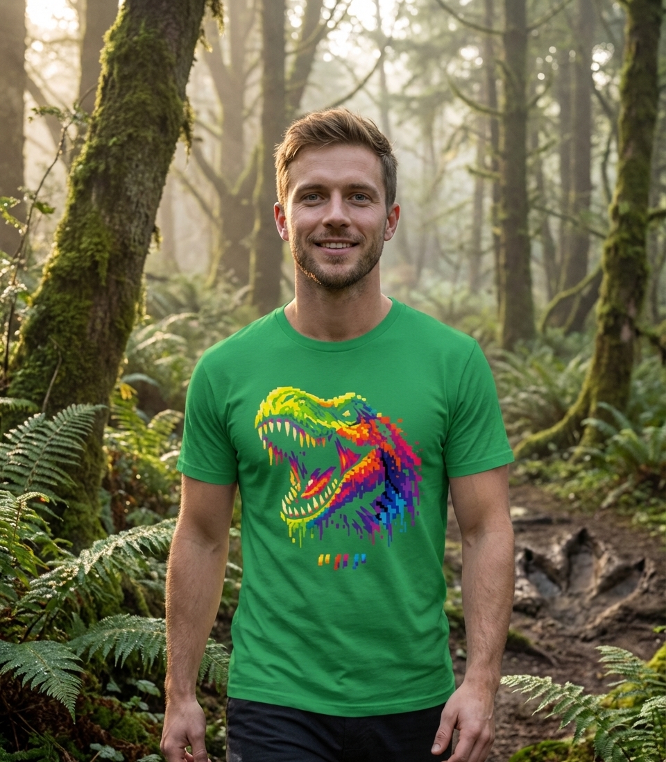 This vibrant pixel T-Rex design captures the lifestyle of retro gaming enthusiasts and dinosaur lovers who enjoy bold graphics, colorful art, and unique prehistoric themes.