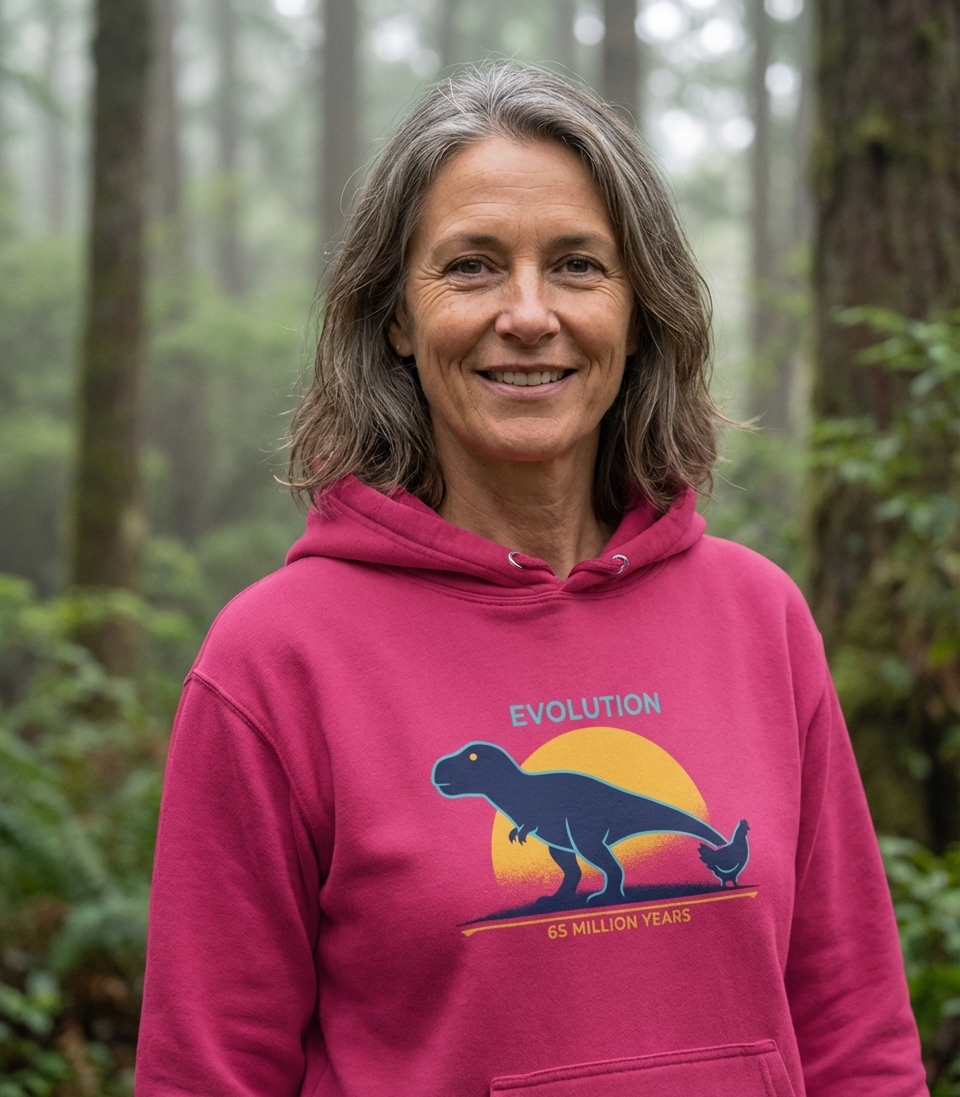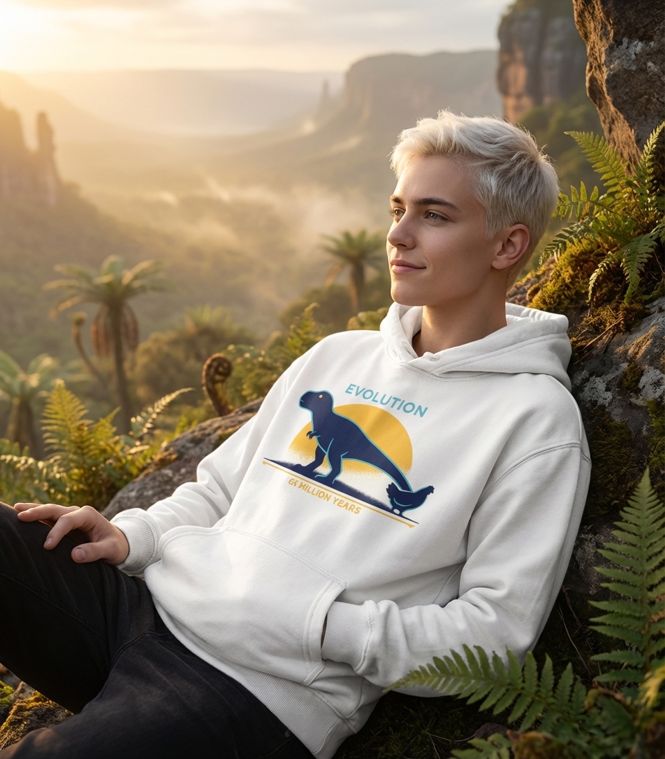The 'Dinosaur Chicken Evolution' design captures the journey of life for science enthusiasts who appreciate the long history of species change.