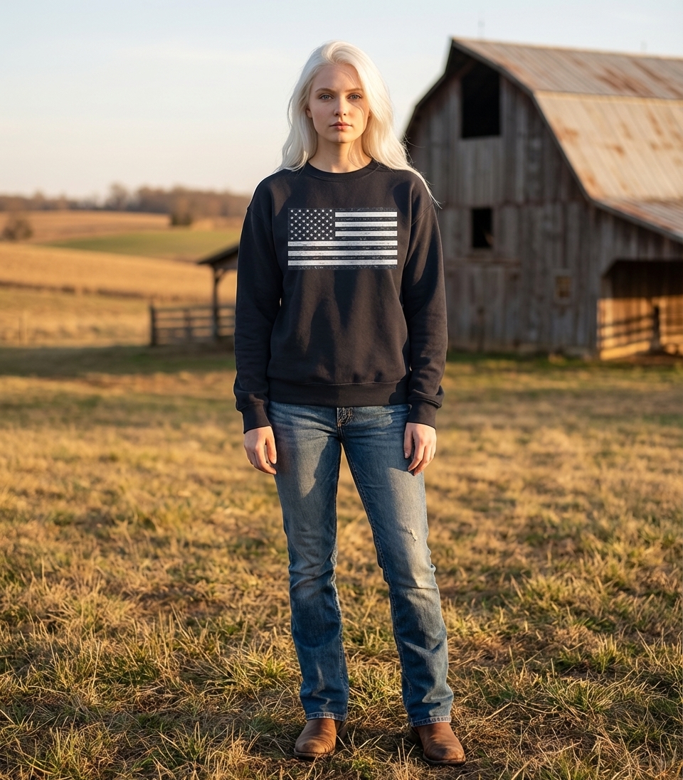 Distressed American Flag Crewneck Sweatshirt
