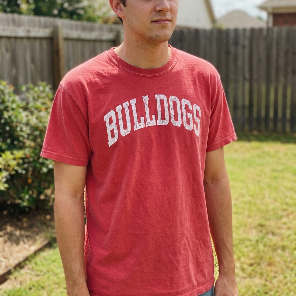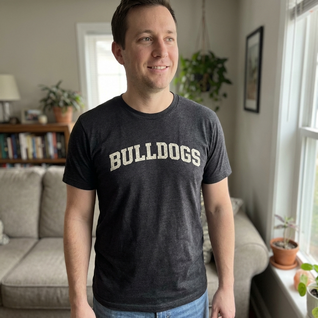 Totally happy with this shirt. The distressed bulldog design looks even better in person, giving it a cool, worn-in vibe, and it's surprisingly comfortable for just kicking around.