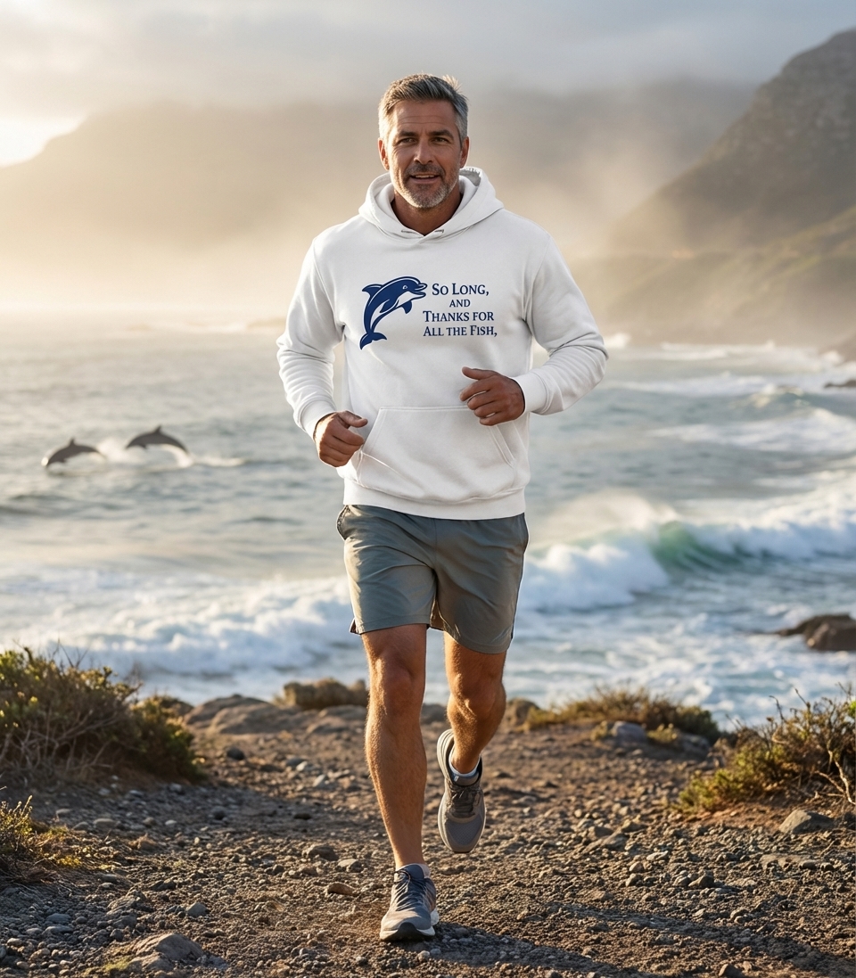 The 'So Long, And Thanks For All The Fish' phrase captures the lifestyle of witty sci-fi fans and animal enthusiasts who appreciate classic literary humor and marine life.