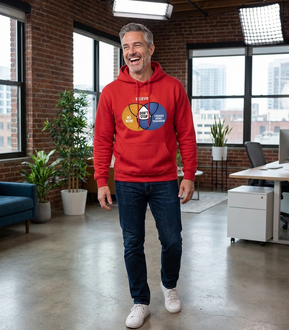 The inspiring Venn diagram captures the mindset of optimists who embrace belief, live in the present, and plan for the future.
