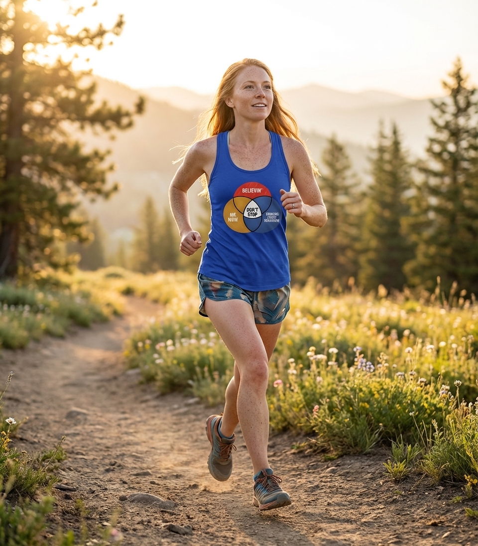 The phrase 'Don't Stop Believin'' in this design encourages resilience and optimism. It represents the importance of maintaining faith in oneself and one's future, while fully experiencing the present moment, especially when facing life's challenges.