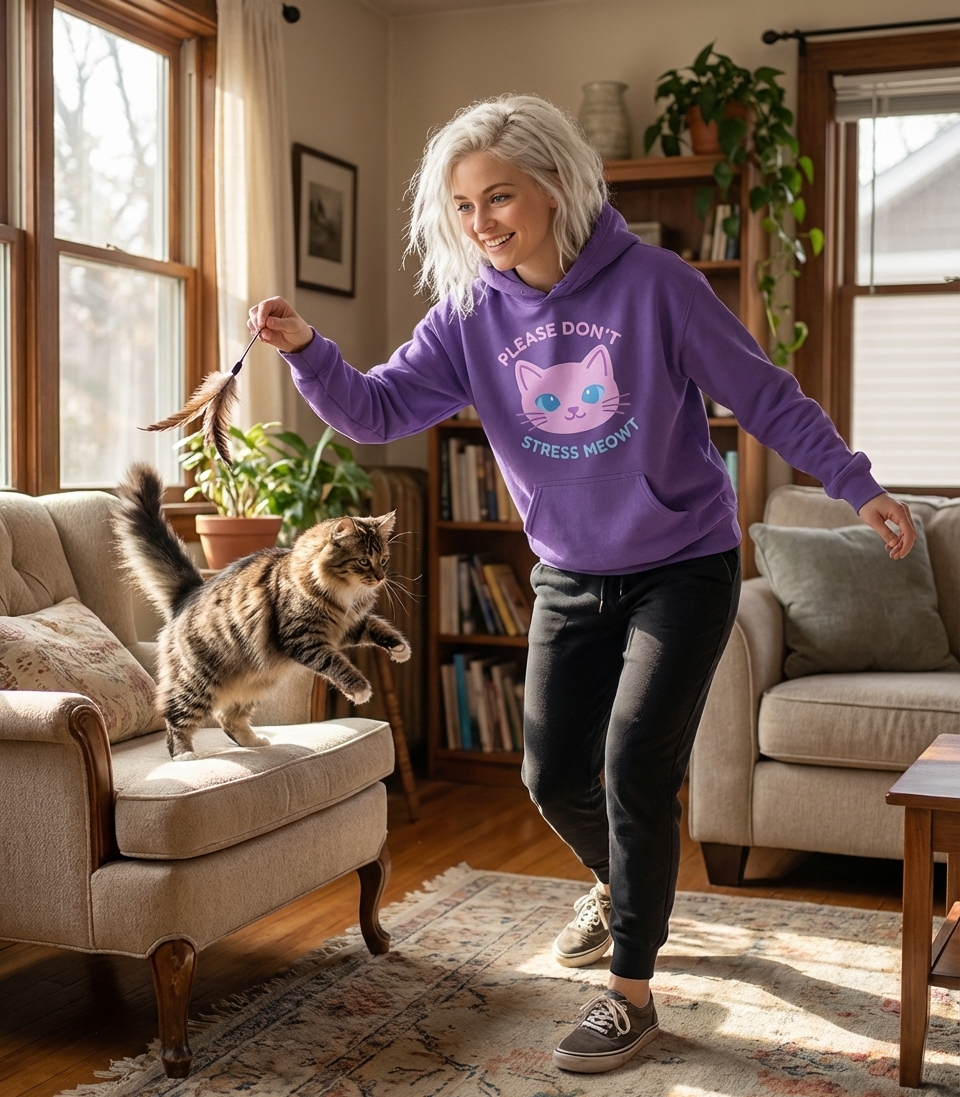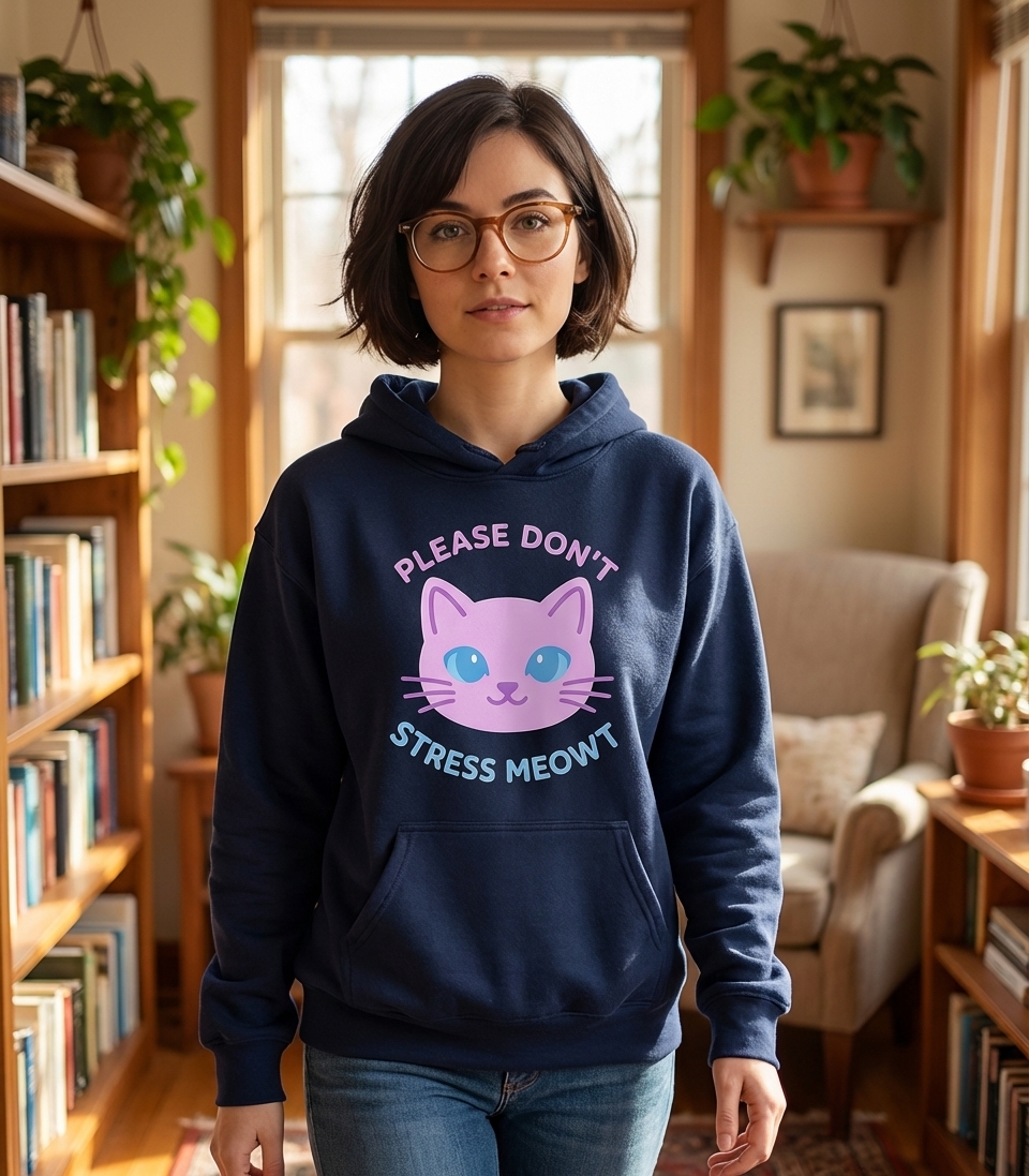The "Please Don't Stress Meowt" phrase captures the lifestyle of calm cat lovers who enjoy feline humor, seek relaxation, and promote mental well-being.